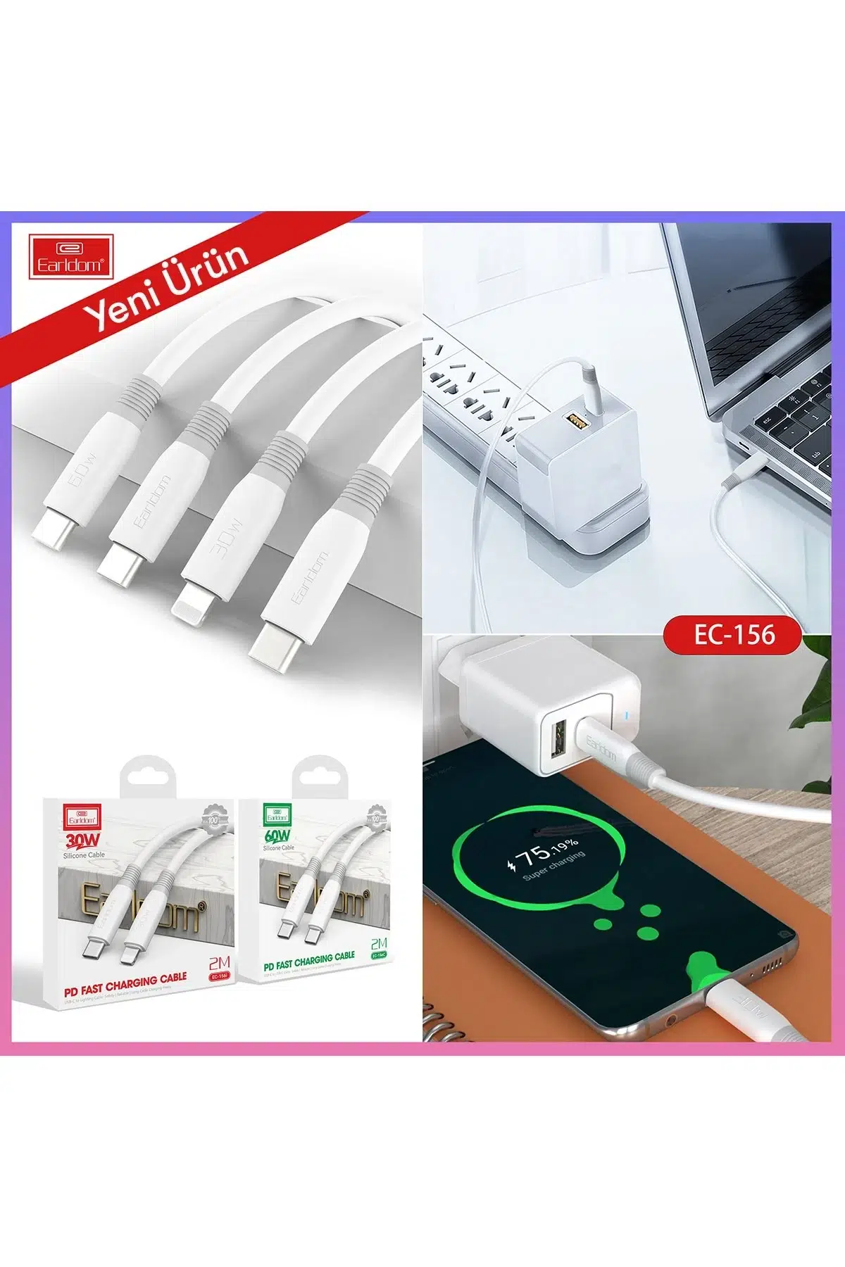 Earldom EC-156i PD 30W Type-C to Lightning 2m Hızlı Şarj Kablosu
