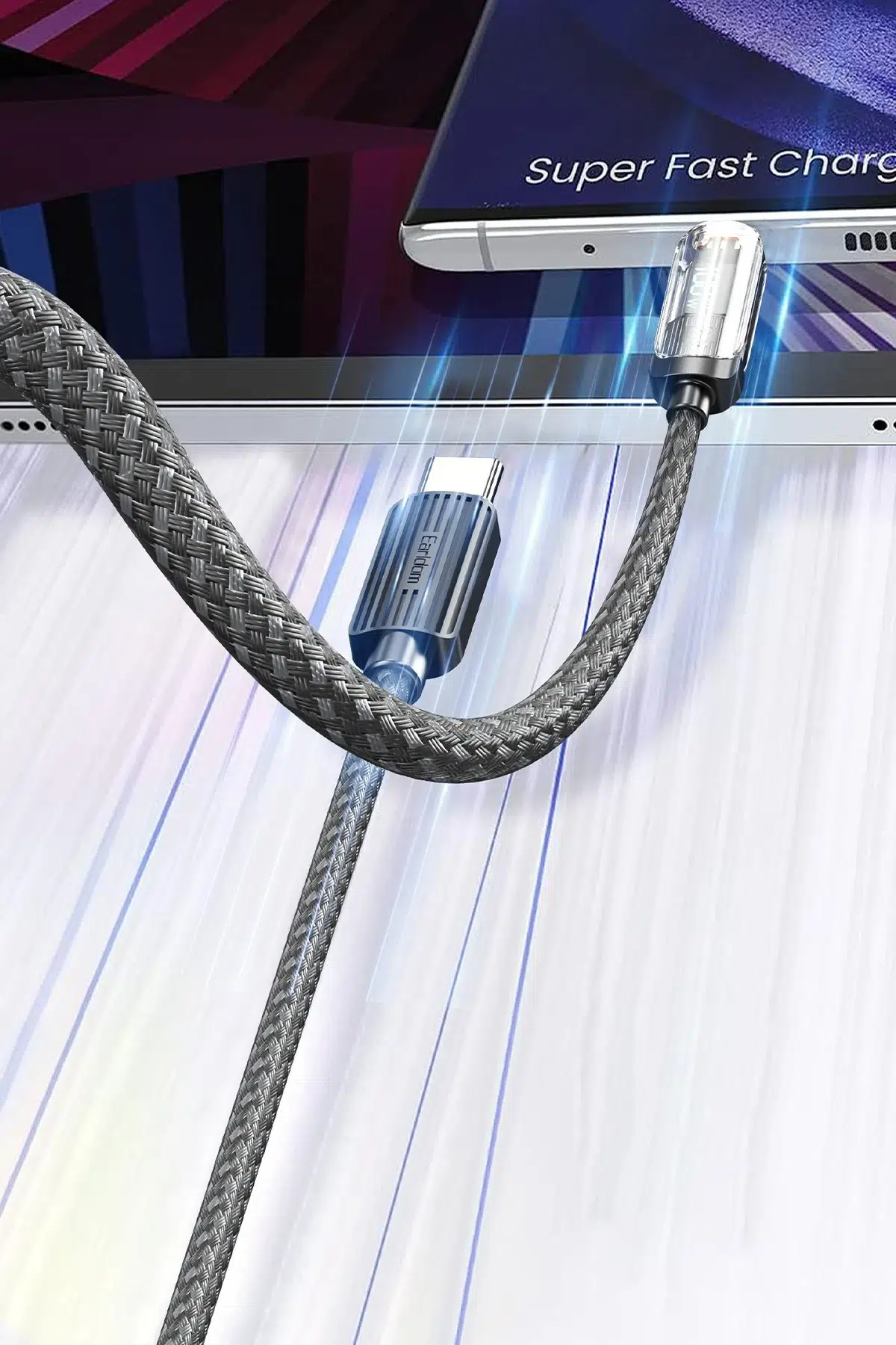 Type-C to Type-C Bağlantı: Geniş uyumluluk sunan bu kablo, Type-C girişli tüm cihazlarla kullanılabilir. Akıllı telefonlardan dizüstü bilgisayarlara kadar her türlü cihaz için idealdir.