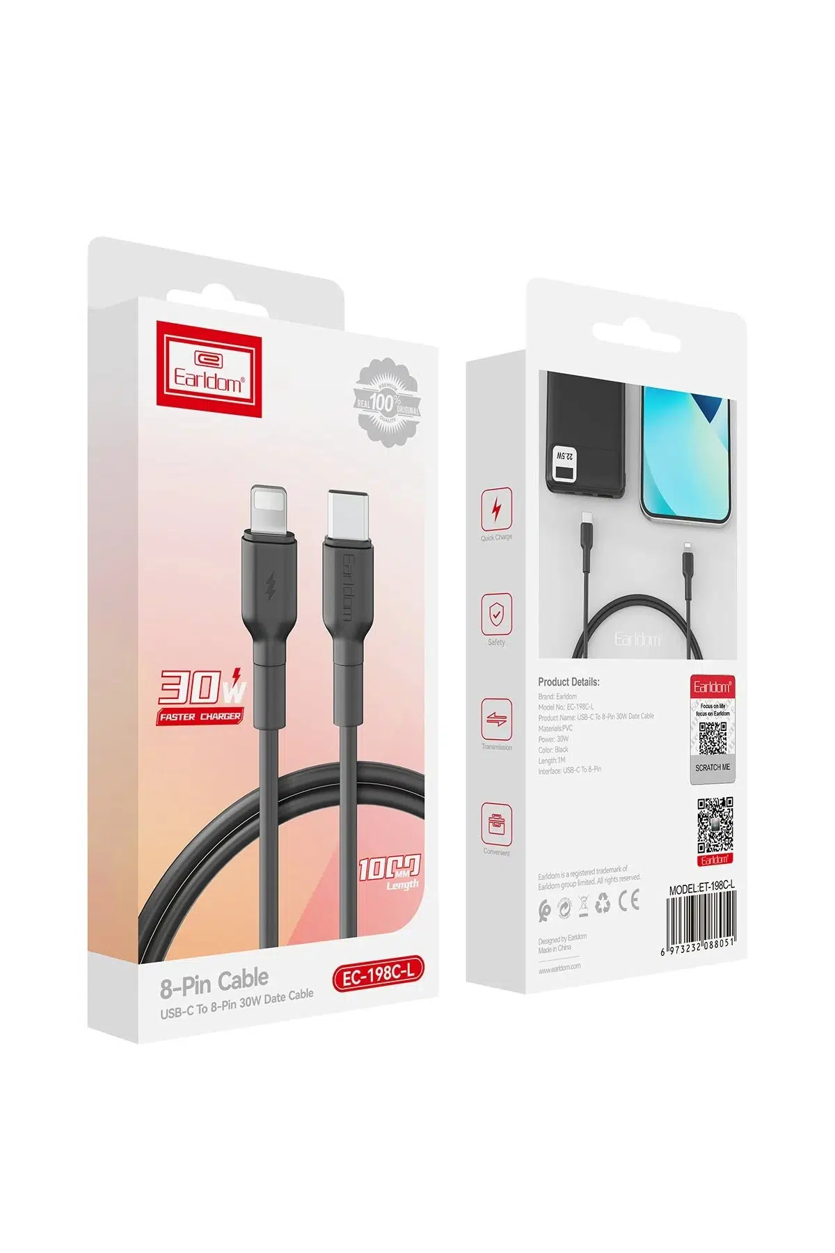 Earldom EC-198CL 1M 30W Type-C to Lightning PD Hızlı Şarj Kablosu