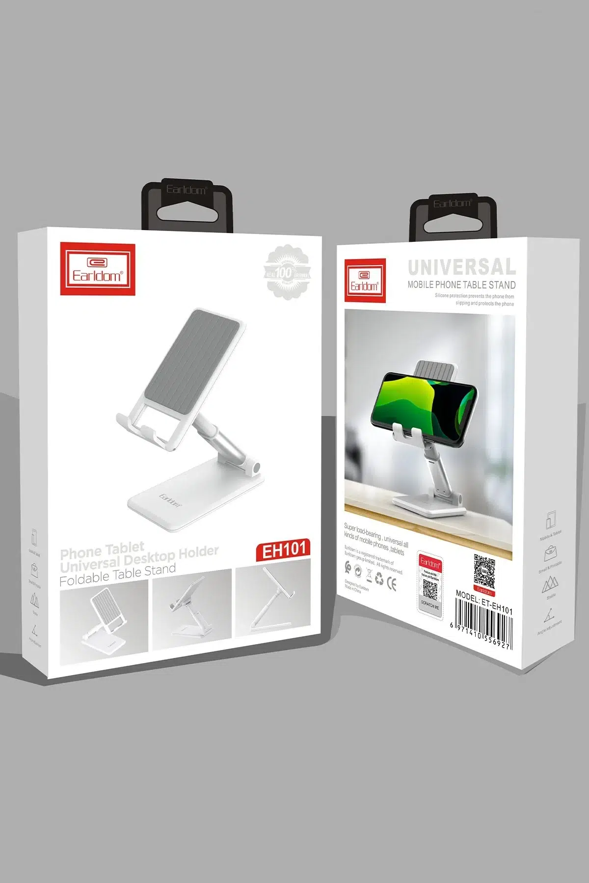 Earldom EH101, telefon ve tabletler için masaüstü kullanıma uygun, kompakt ve katlanabilir bir tutucudur. Dayanıklı ve şık tasarımıyla hem iş yerinde hem de evde kullanıma uygun olan bu tutucu, farklı cihaz boyutlarıyla uyumludur ve cihazlarınızı güvenle sabit tutar.
