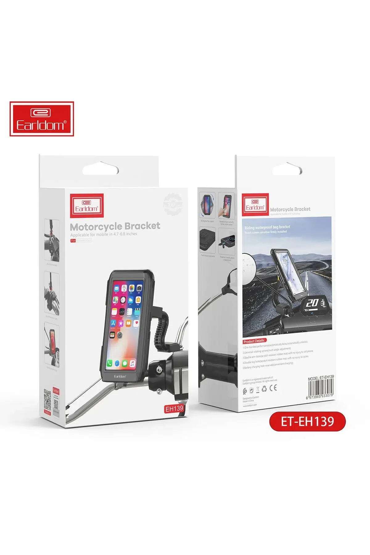 Earldom EH139, motosiklet tutkunları için pratik ve güvenli bir telefon tutucu olup, her hava koşulunda üstün koruma ve konfor sağlar. Sürüş sırasında telefonunuza kolay erişim sağlamak için mükemmel bir seçim!
