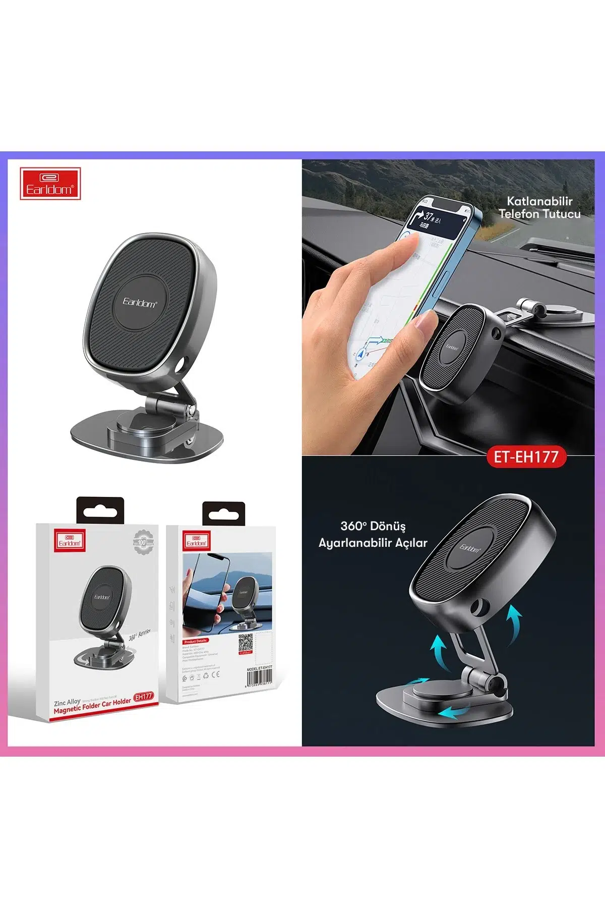 | Etiketler | Earldom EH177 Yapışkanlı Mıknatıslı 360 Derece Ayarlanabilen Manyetik Araç Tutucu - Siyah |