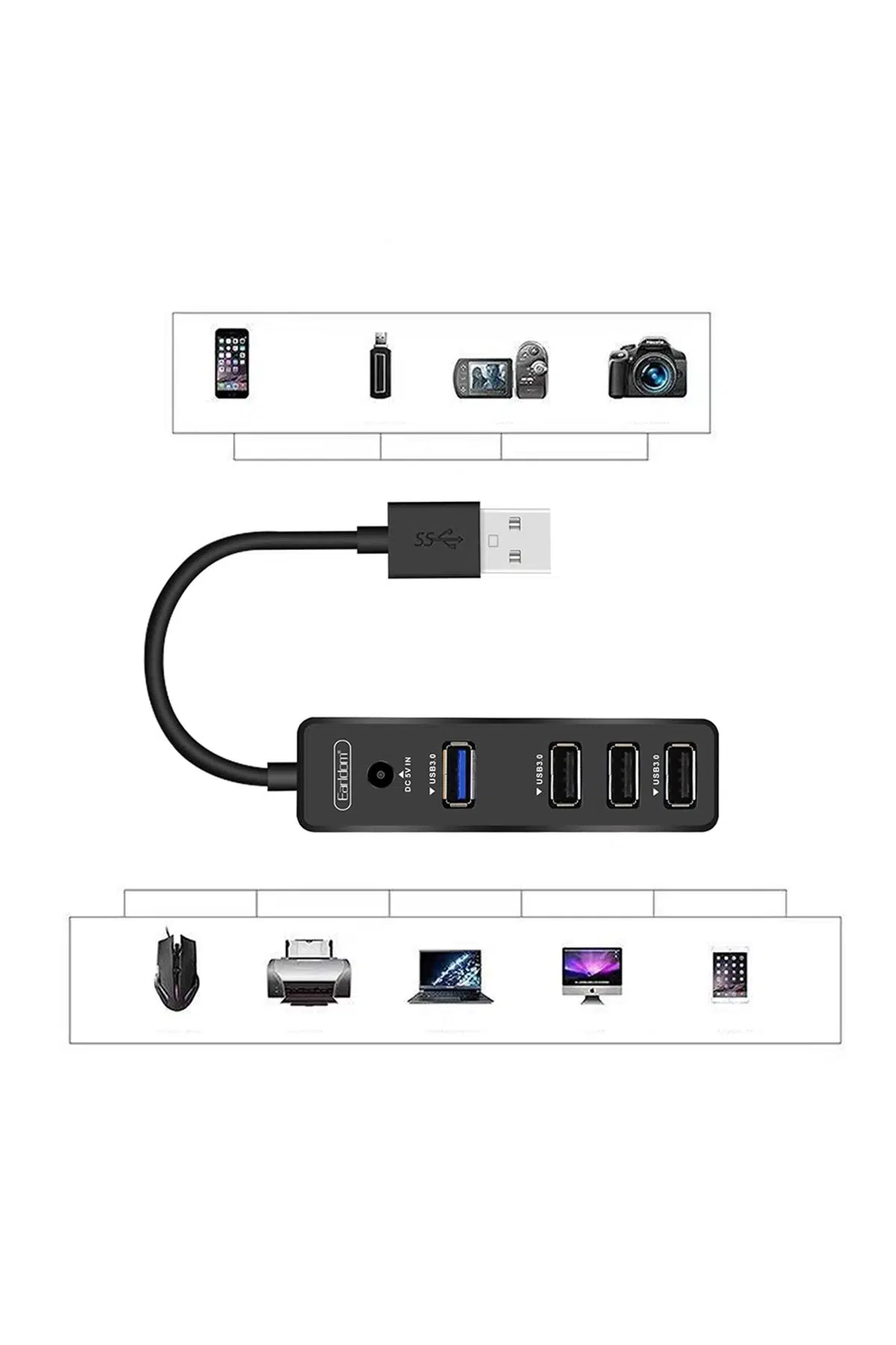 | Etiketler | Earldom HUB07 Tak Çalıştır 3 Adet Usb 2.0 ve 1 Adet Usb 3.0 Çıkışlı Usb Çoklayıcı - Siyah |