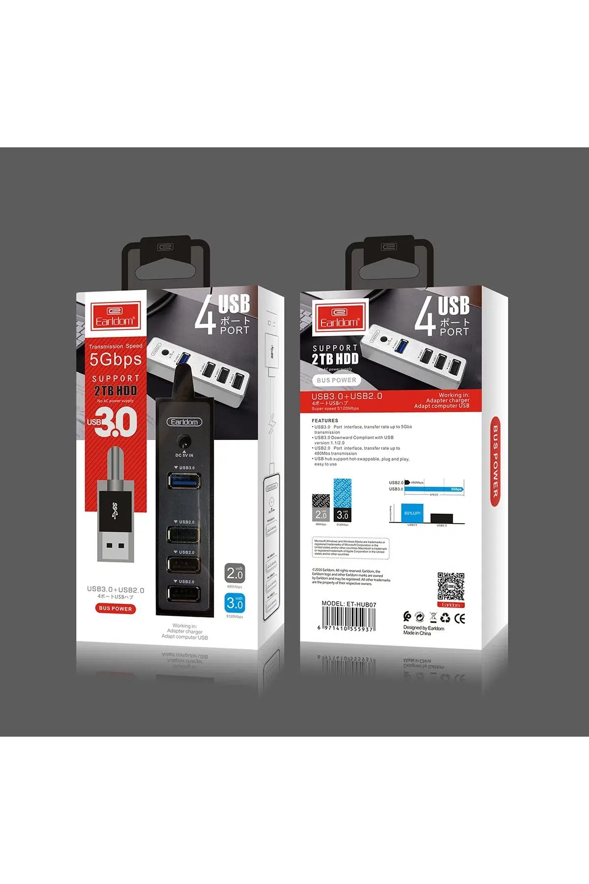 4 Port Genişleme: 3 adet USB 2.0 ve 1 adet USB 3.0 çıkış, aynı anda birden fazla cihaz bağlamanızı sağlar.