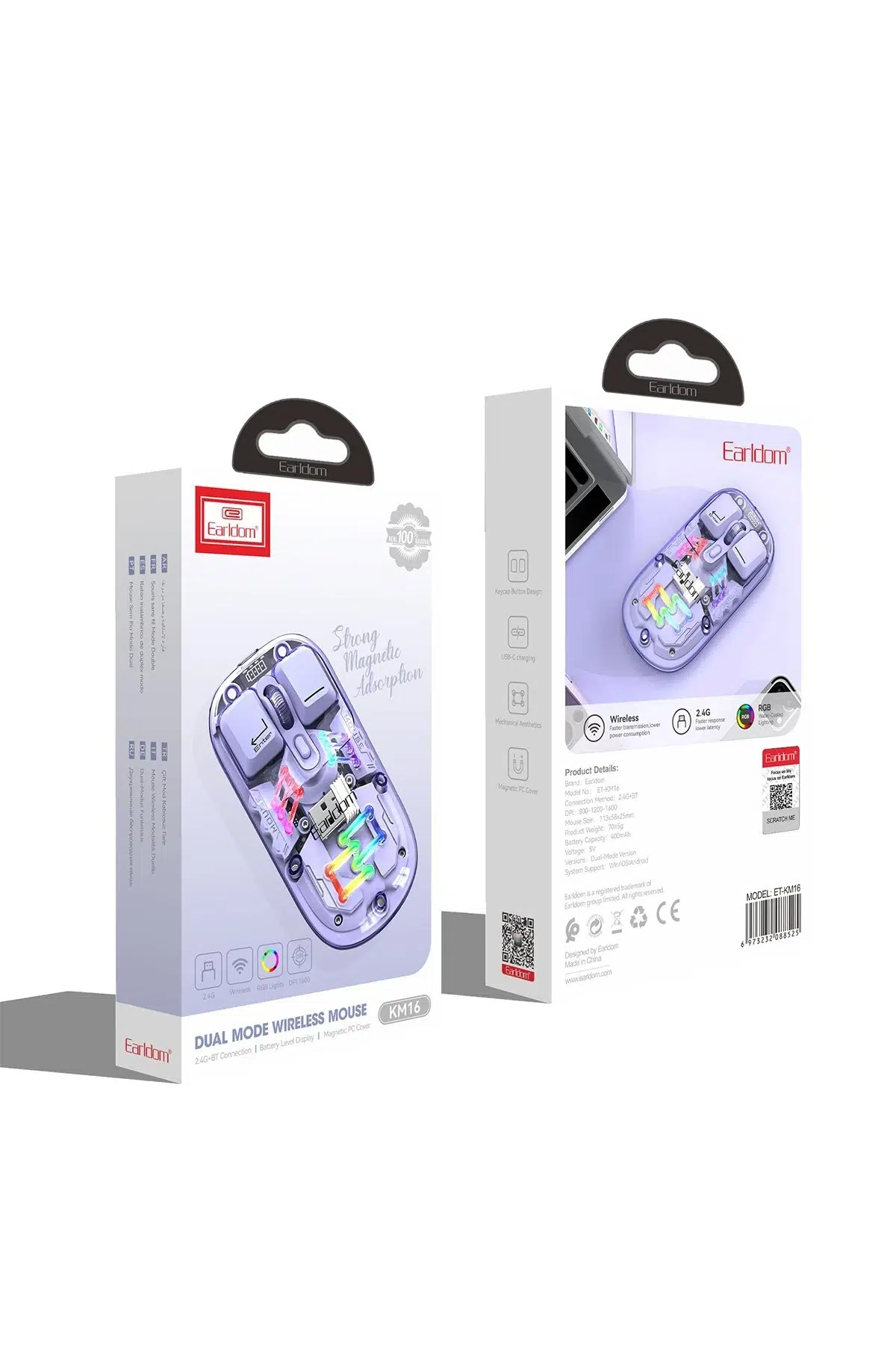 | Etiketler | Earldom KM16 1600 DPI Sessiz Transparan Yapılı RGB Kablosuz Ofis Mouse - Mor |
