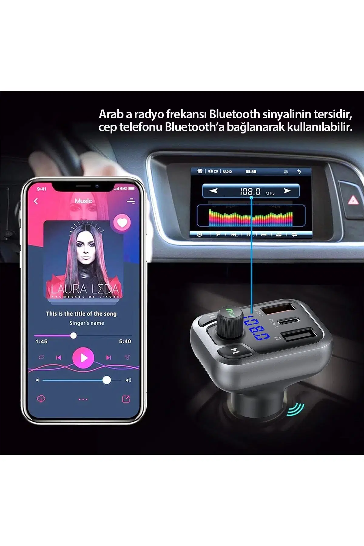 FM Transmitter: Araç radyosu üzerinden müzik dinlemenize veya çağrılarınızı aracın hoparlör sistemine yönlendirmenize olanak tanır.