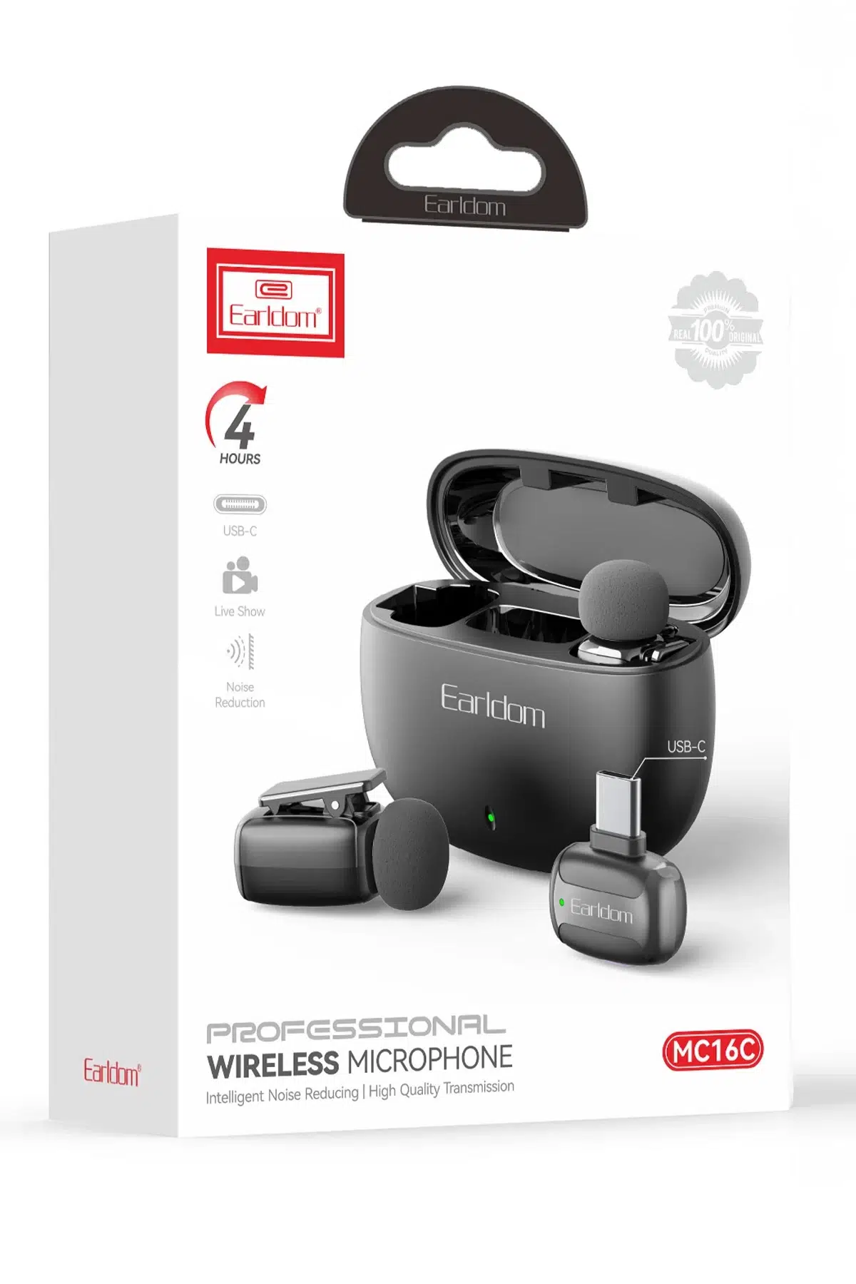 Earldom MC16C Type-C Uçlu Gürültü Engelleme Özellikli 2 Adet Kablosuz Dijital Yaka Mikrofonu