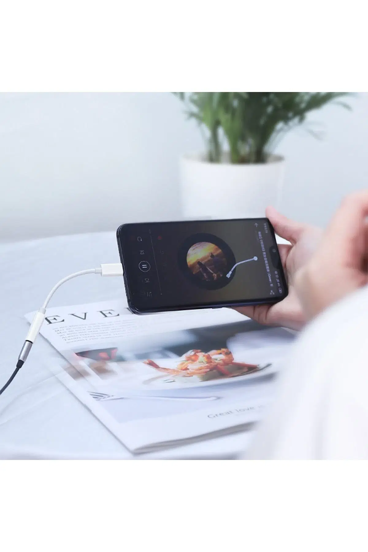 Type-C girişli akıllı telefon veya tabletlerinizi, AUX bağlantılı ses cihazlarına bağlayarak müzik dinlemek için idealdir.