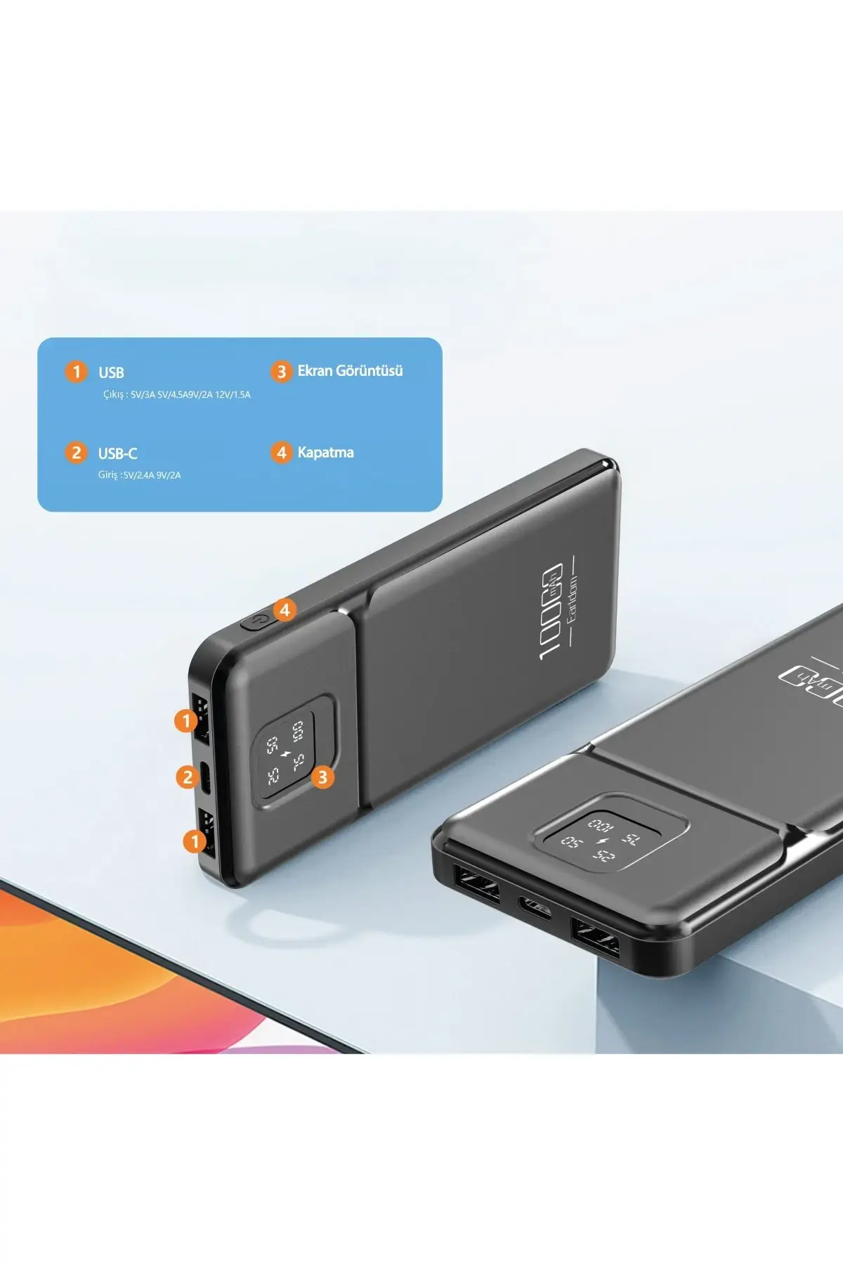 Earldom PB64 10.000 mAh 2 Adet 10W USB Çıkışlı Dijital Göstergeli Powerbank