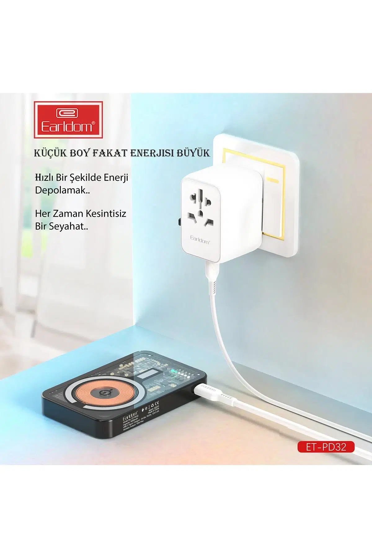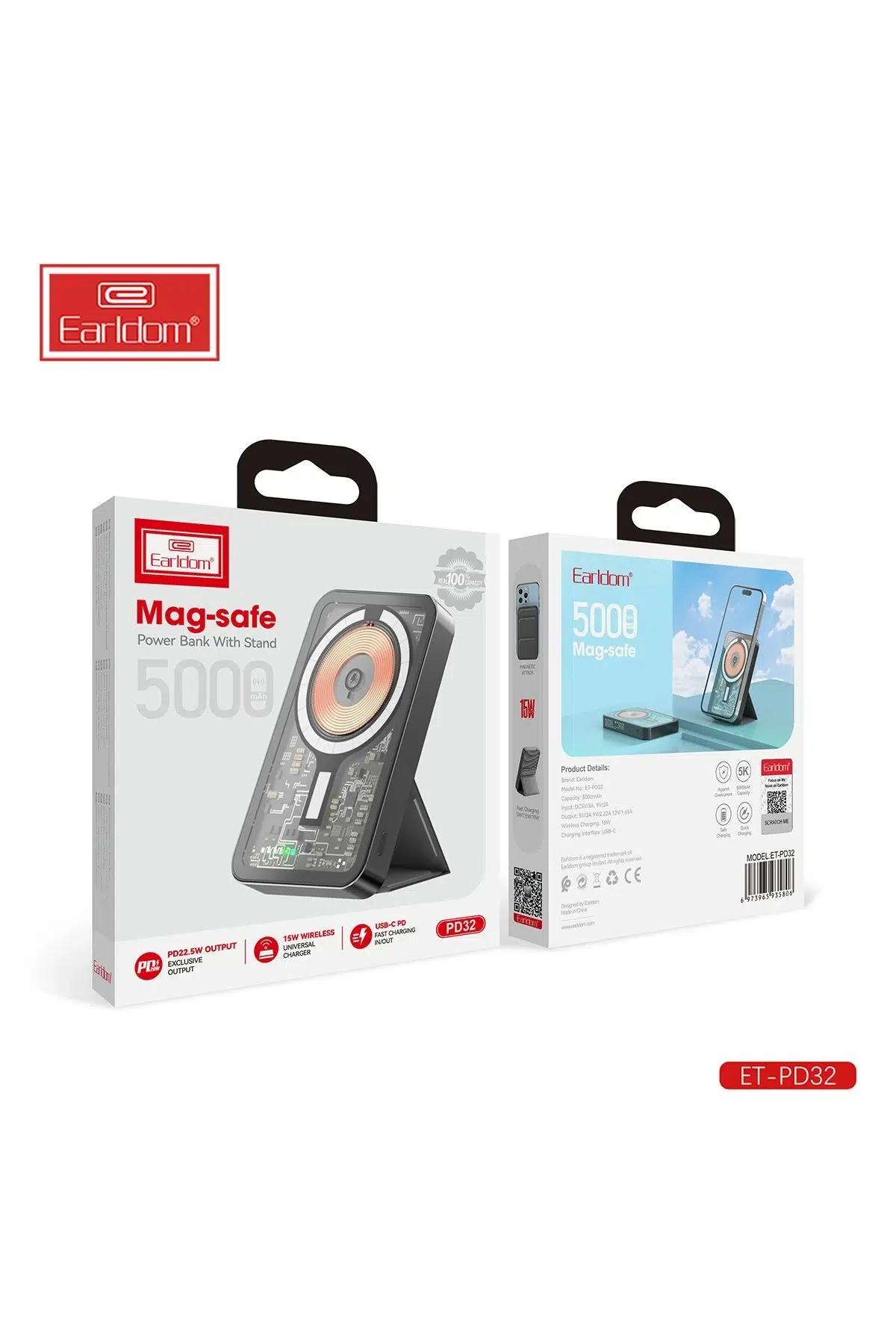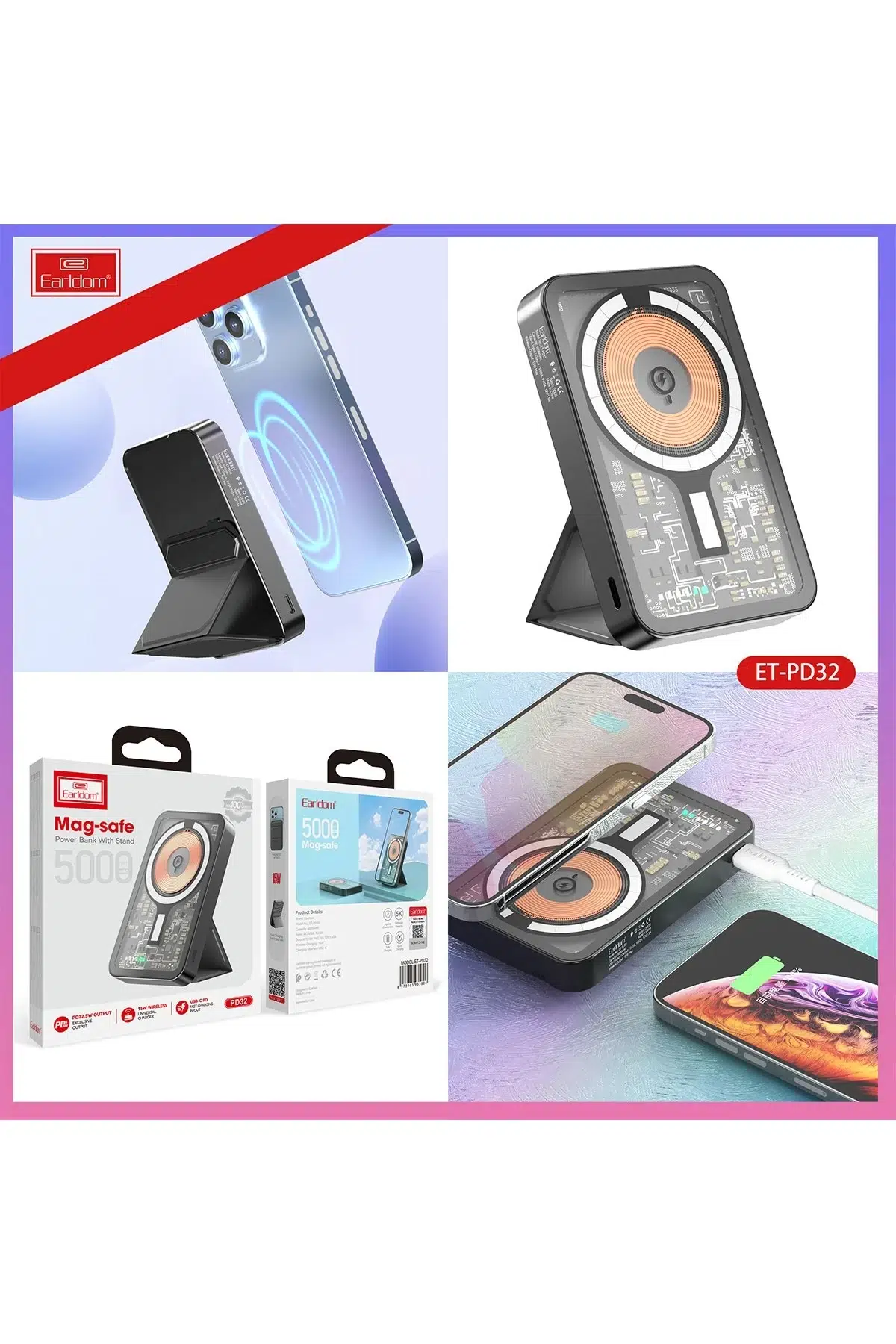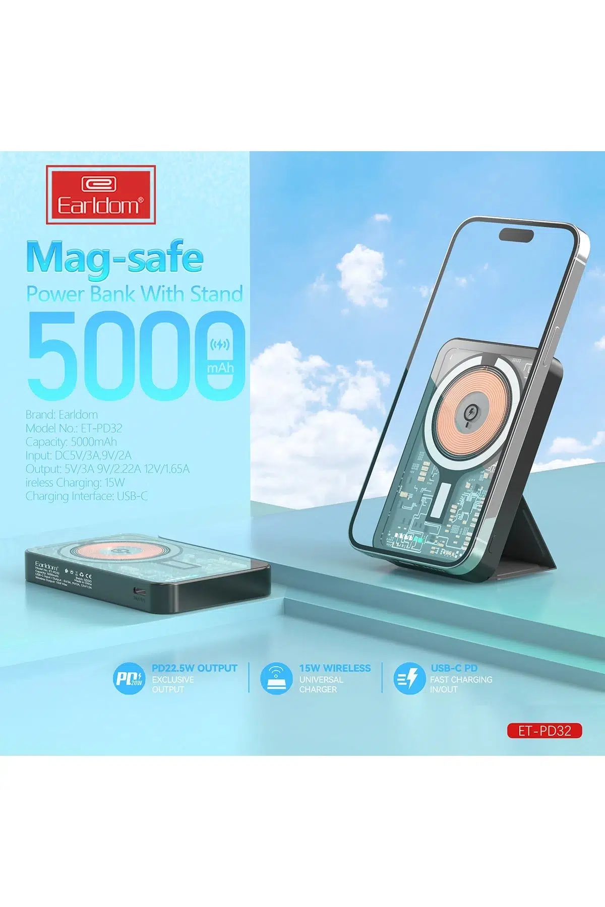 Earldom PD32 5.000 mAh 22.5W Kablosuz Şarjlı Standlı PD Hızlı Şarj Powerbank