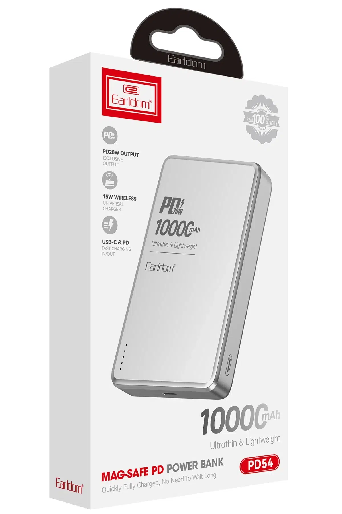 Earldom PD54 10.000 mAh 15W Kablosuz Şarj ve 20W Type-C Çıkışlı PD Hızlı Şarj Powerbank
