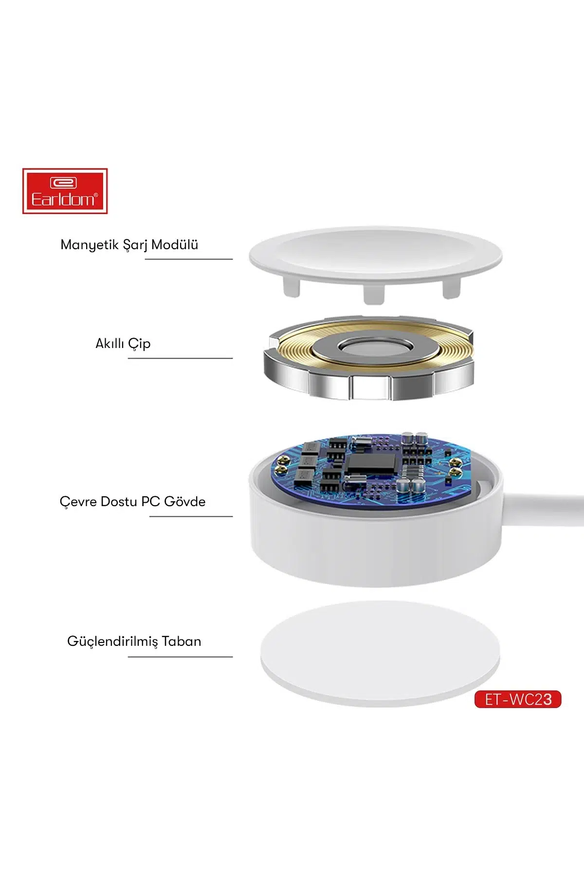 EARLDOM WC23 Akıllı Saat Kablosuz Şarj Adaptörü, kompakt yapısı, güçlü manyetik tasarımı ve hızlı şarj teknolojisi ile akıllı saatiniz için ideal bir şarj çözümüdür. Hem günlük kullanımda hem de seyahatlerde yanınızda bulundurmak için mükemmel bir aksesuardır.