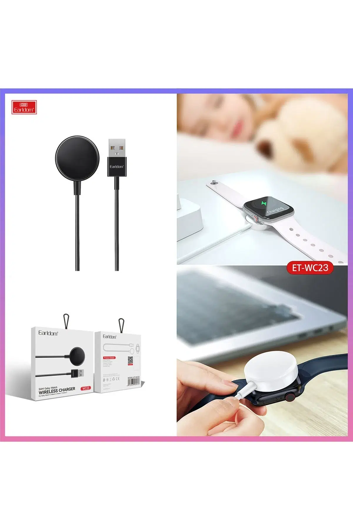 Uyumluluk: Earldom WC23, birçok popüler akıllı saat modeli ile uyumlu olup, özellikle Apple Watch gibi kablosuz şarj destekleyen cihazlar için tasarlanmıştır. Tüm Apple Watch serileri ve diğer kablosuz şarj destekli akıllı saatlerle kullanılabilir.