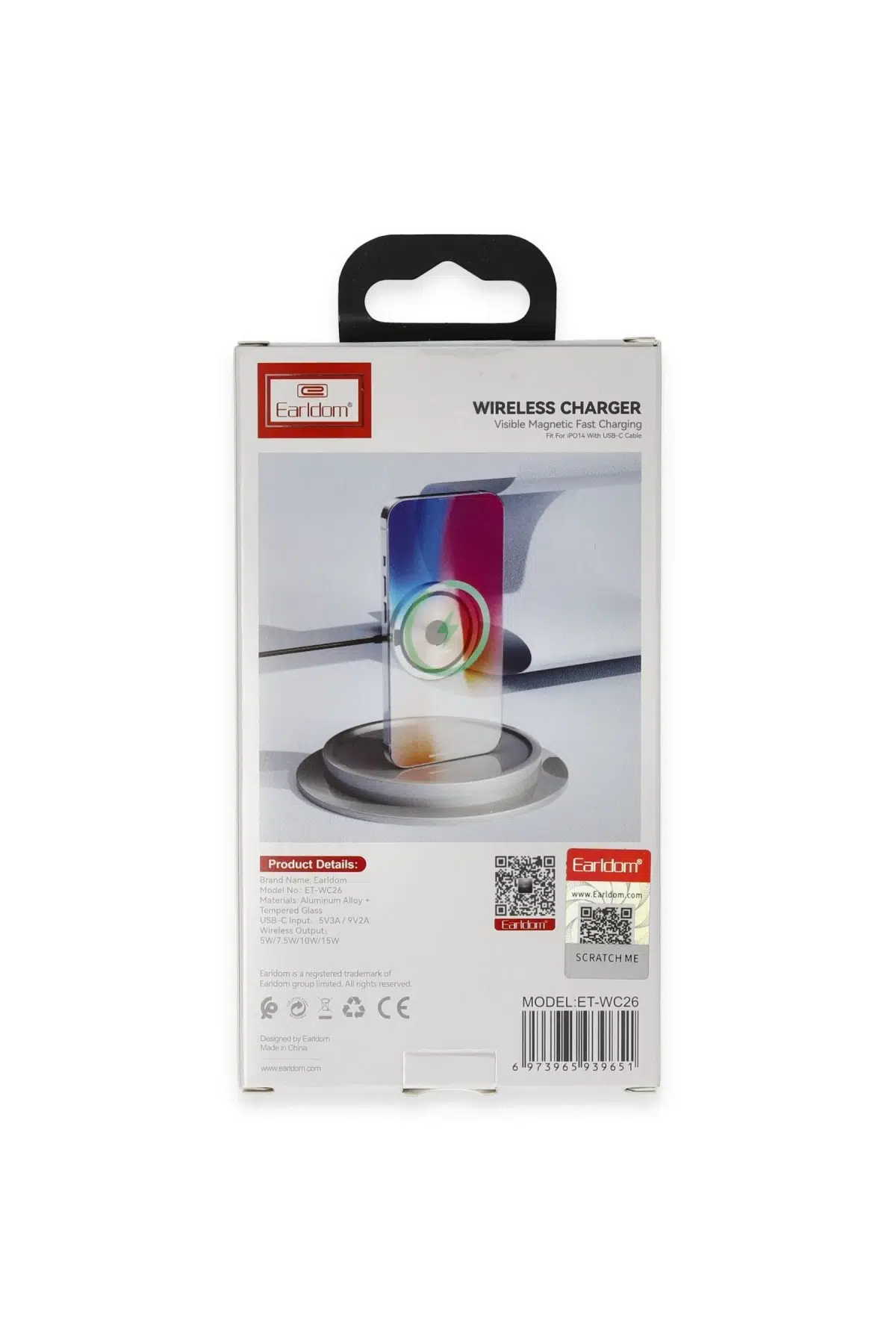 Earldom WC26, Magsafe uyumlu cihazlar için tasarlanmış yüksek verimli bir kablosuz şarj cihazıdır. 15W hızlı şarj kapasitesi sayesinde, uyumlu telefonlarınızı kısa sürede doldururken, akıllı telefonunuzun tasarımına mükemmel bir uyum sağlar. Kompakt ve şık tasarımı ile her ortama kolayca entegre edilebilir.