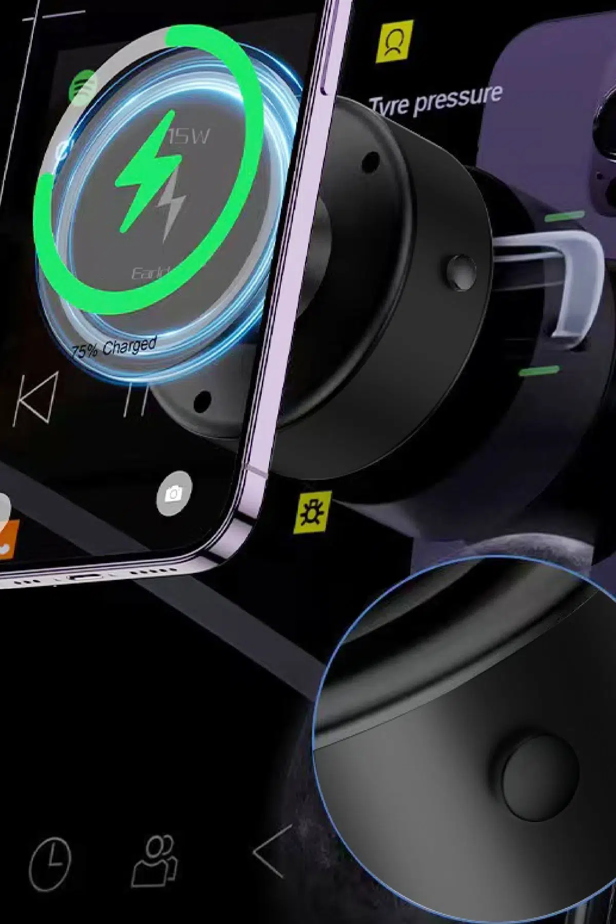 Geliştirilmiş tasarımı sayesinde cihazınızı tek elle kolayca yerleştirebilir ve çıkarabilirsiniz. Bu, sürüş sırasında dikkat dağınıklığını en aza indirerek güvenliği artırır.