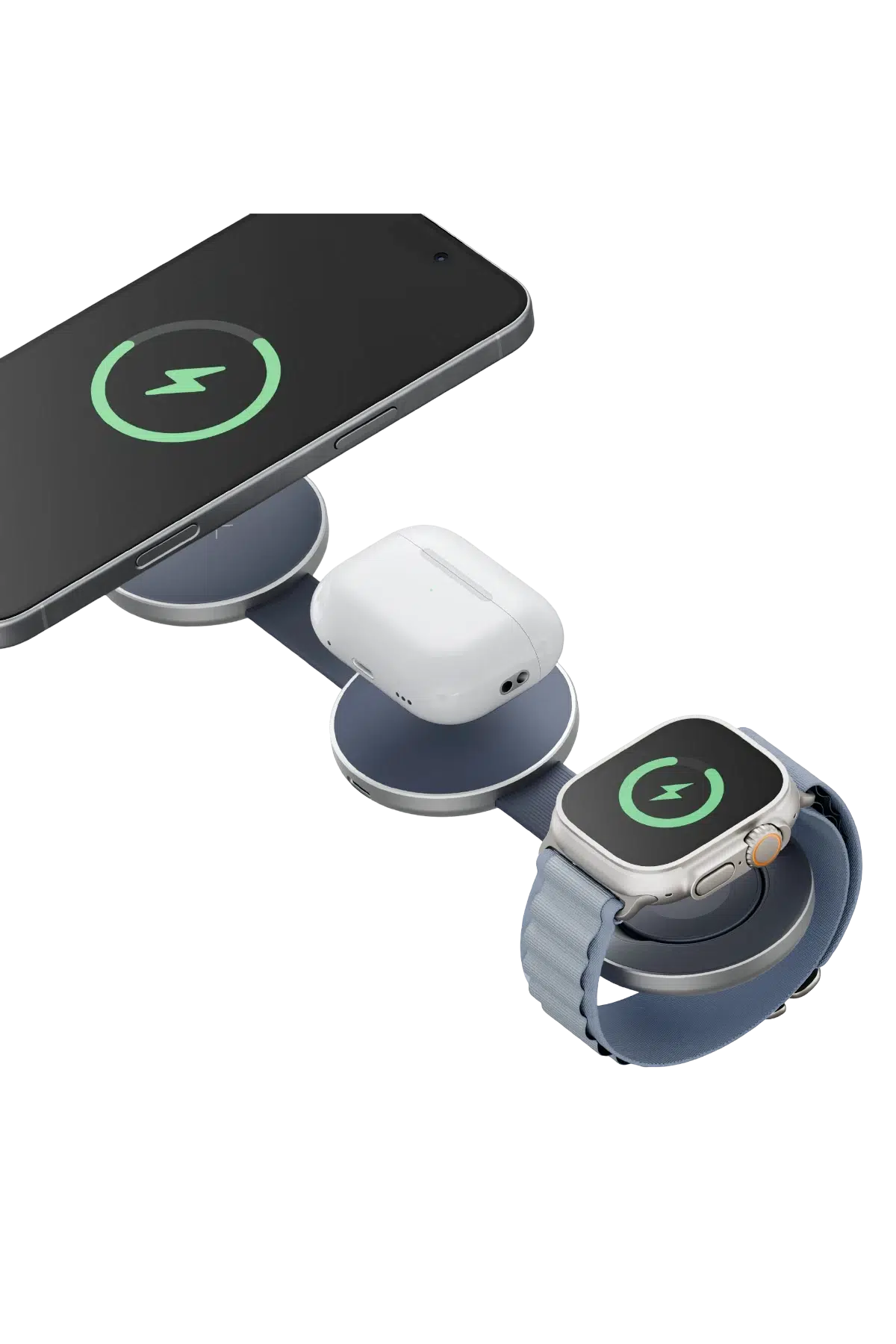 Üç Cihazı Aynı Anda Şarj Etme Özelliği: iPhone, Apple Watch ve AirPods’u tek bir kablosuz şarj standında aynı anda şarj ederek kablo karmaşasından kurtulun.