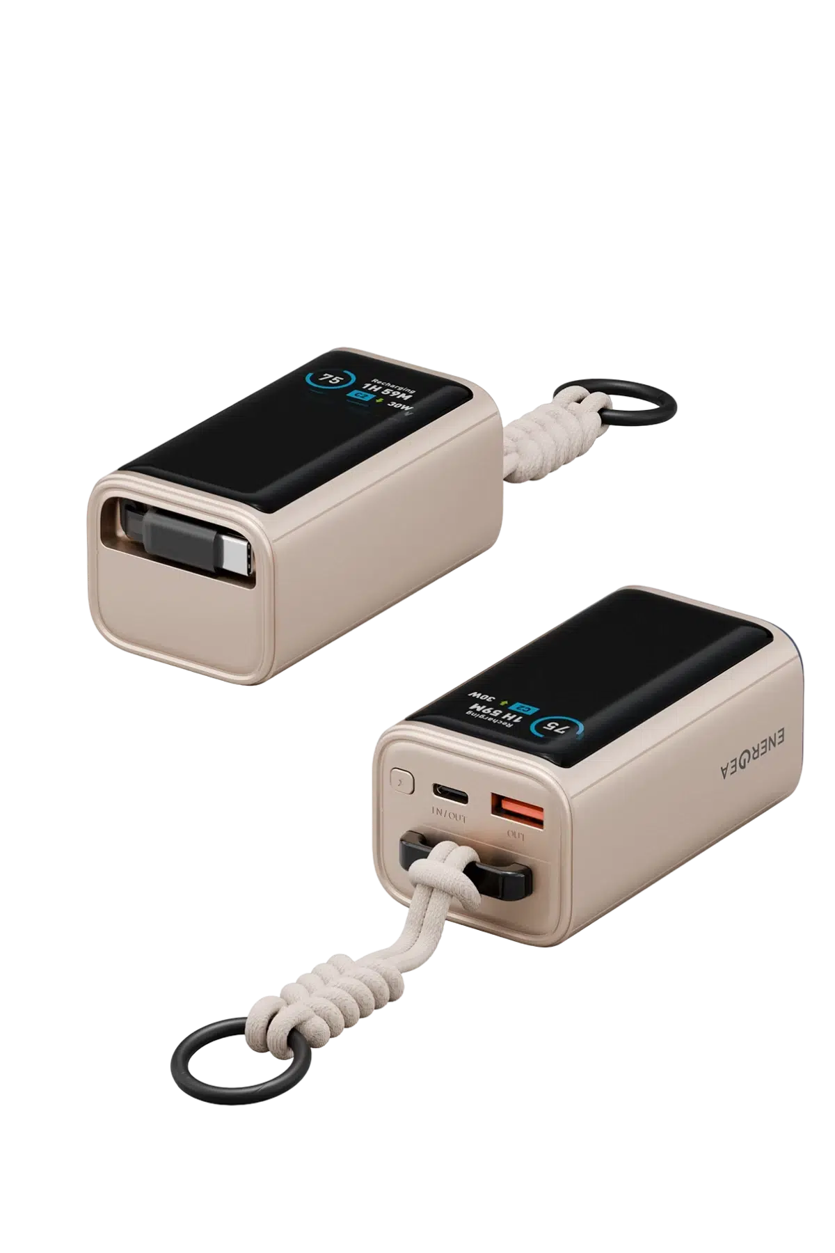 Energea ComPac Arc 45 Dijital Göstergeli 10.000 mAh Dahili Type-C Kablolu 45W Şarj Çıkışlı PD Hızlı Şarj Powerbank