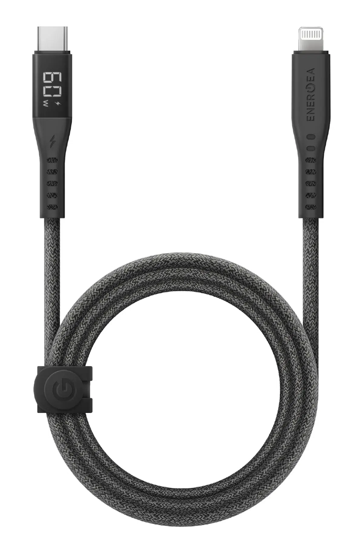 Energea Flow 1.5M 60W Dijital Göstergeli Type-C to Lightning PD Hızlı Şarj Kablo - Siyah