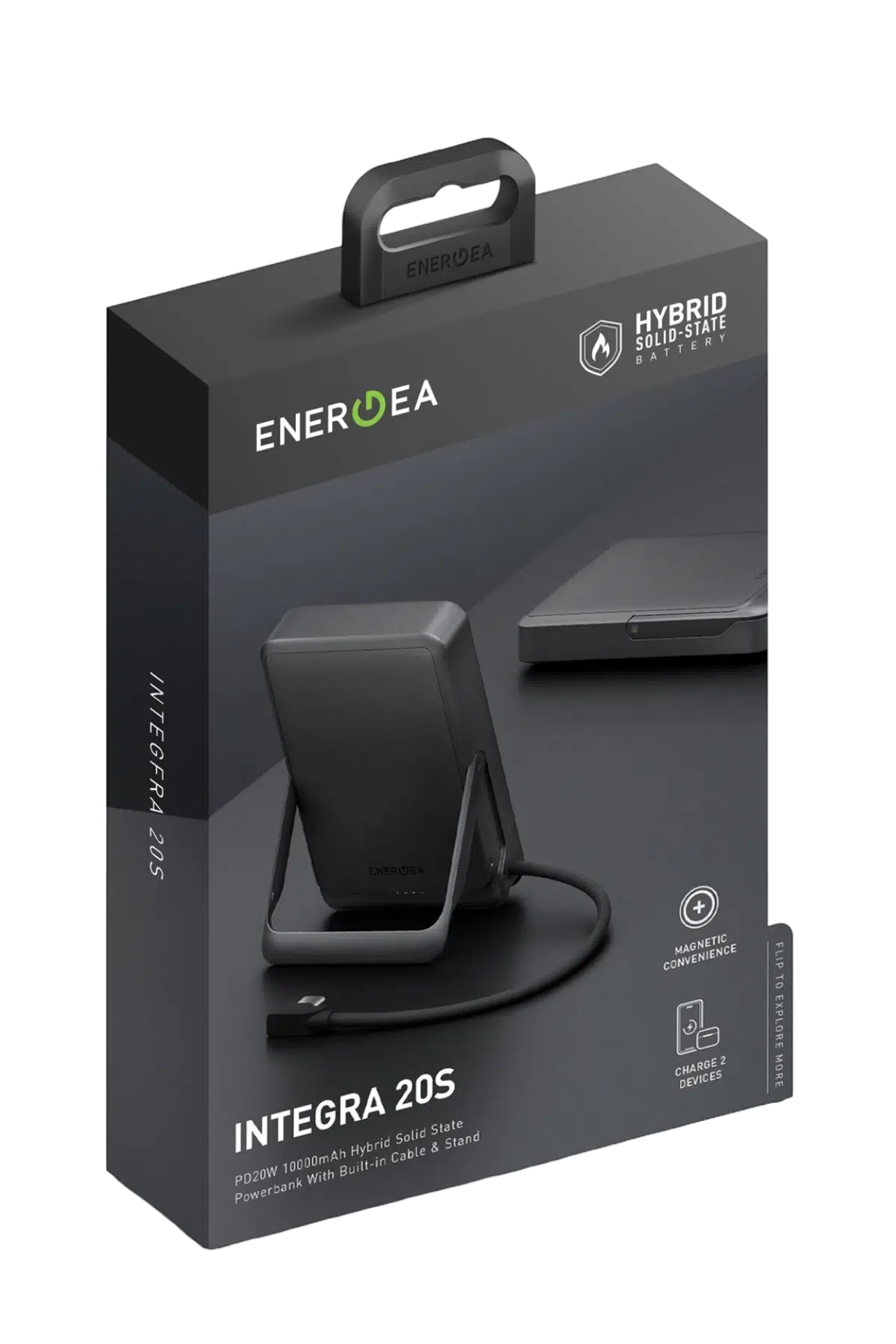 Energea Integra 20s Dijital Göstergeli 10.000 mAh 20W Type-C Dahili Kablolu Manyetik Kickstand Destekli Semi Solid State Powerbank