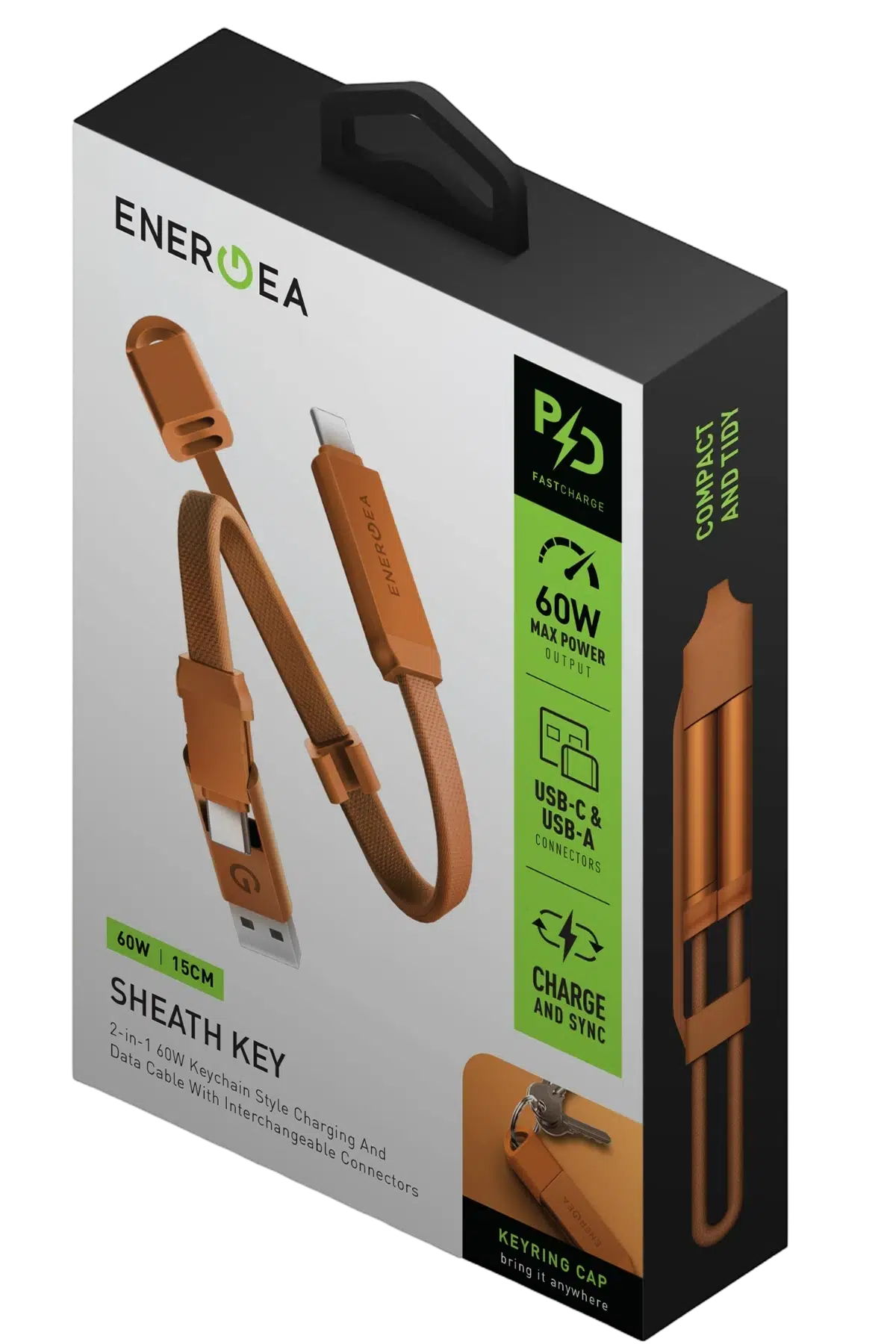 Energea Sheath Key 15cm 60W 2in1 Type-C to Type-C ve USB-A Hızlı Şarj Kablo