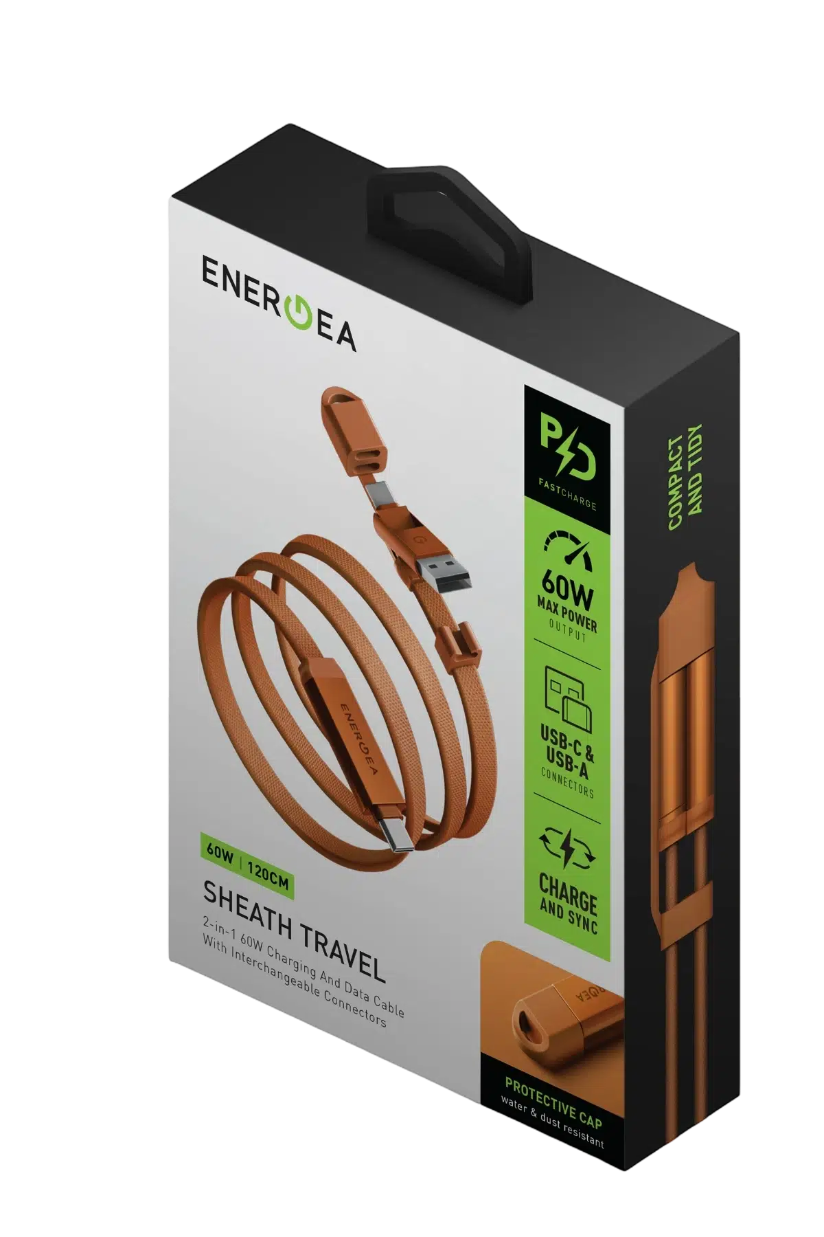 Energea Sheath Travel 1.2M 60W 2in1 Type-C to Type-C ve USB-A Hızlı Şarj Kablo