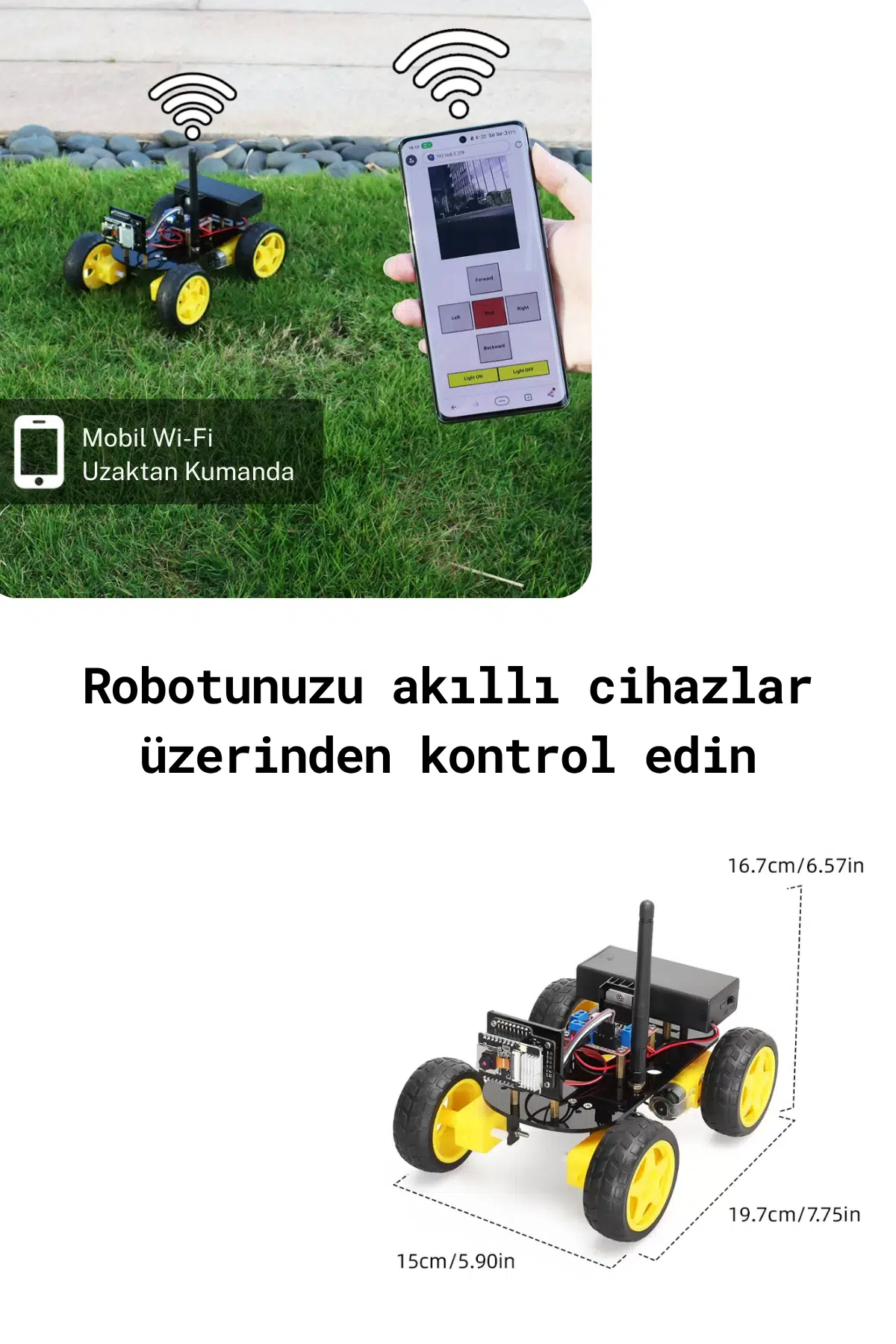 Robotik, yazılım ve yapay zeka dünyasına güçlü bir giriş yapmak isteyenler için tasarlanan ESP32 WiFi Kamera Robot Araba Kiti, ileri seviye teknolojiyi eğlenceli bir öğrenme deneyimiyle birleştirir. 4WD güçlü motor sistemi, ESP32 CAM kamera modülü ve WiFi uzaktan kontrol özelliği sayesinde hem başlangıç seviyesine hem de gelişmiş kullanıcı projelerine uygundur.