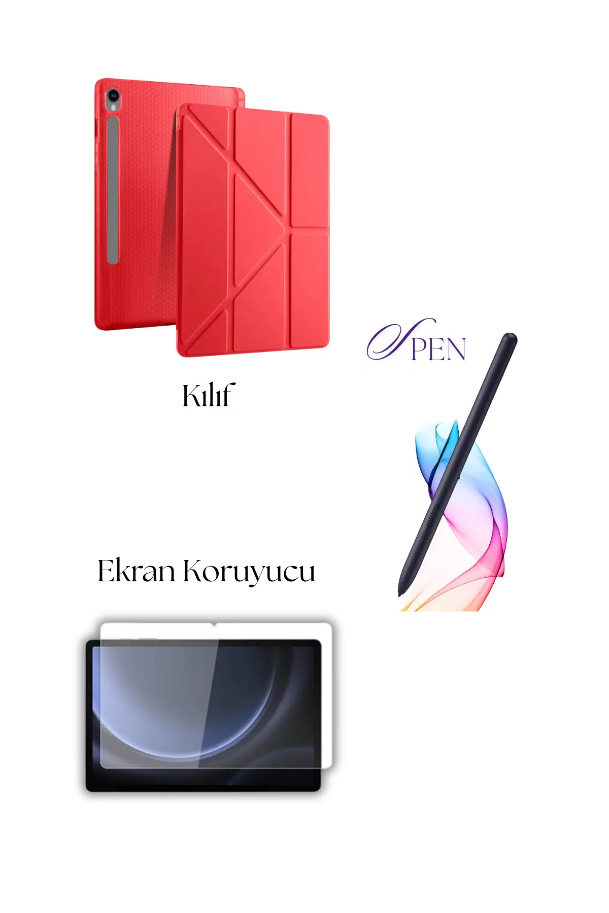 | Etiketler | Fuchsia Galaxy Tab S9 / S9 FE ile Uyumlu Tablet Kılıfı S Pen Tablet Kalemi Ekran Koruyucu Set |