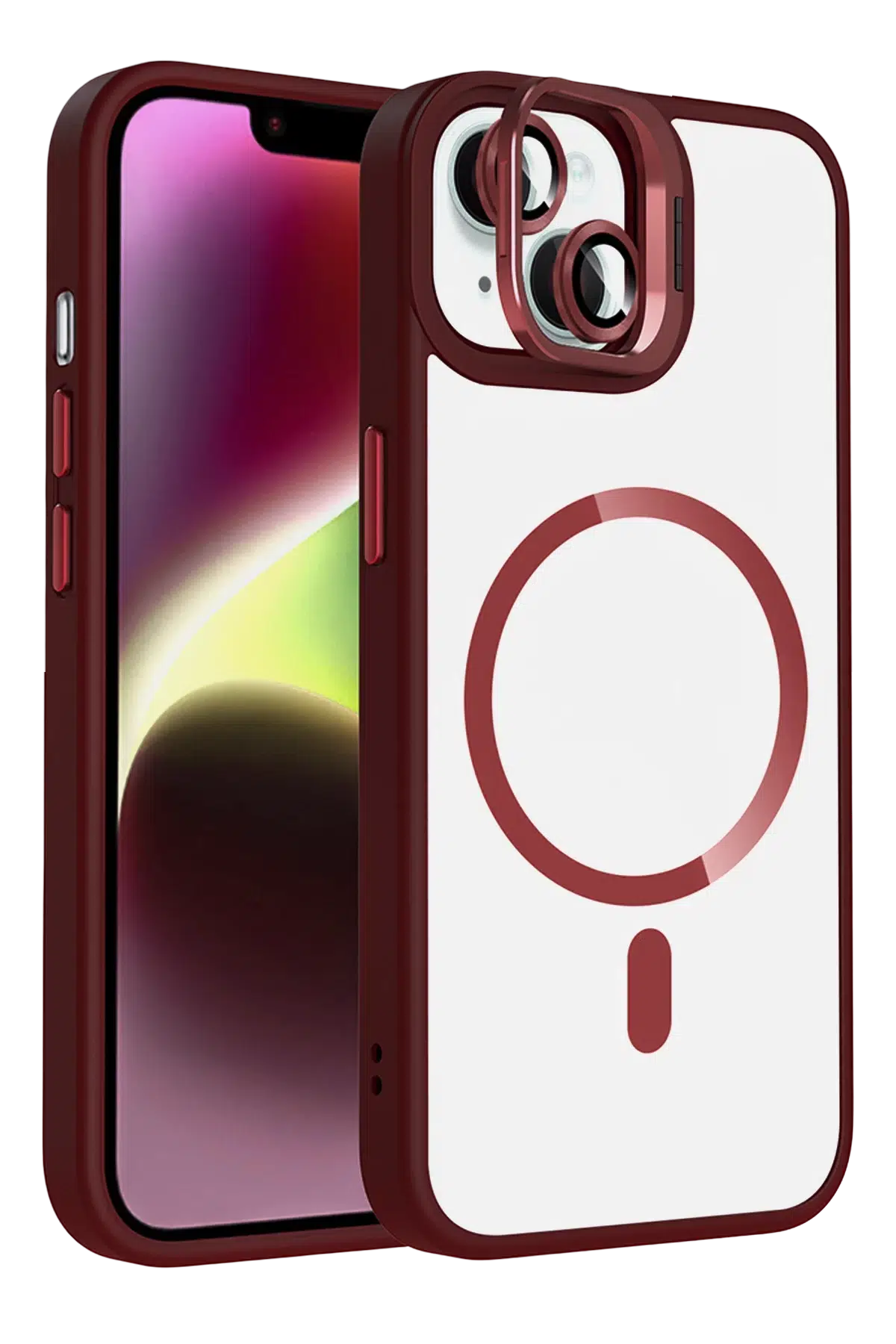 | Etiketler | Fuchsia iPhone 13 ile Uyumlu Remim Lensli Kablosuz Şarj Özellikli Standlı Kapak - Bordo |