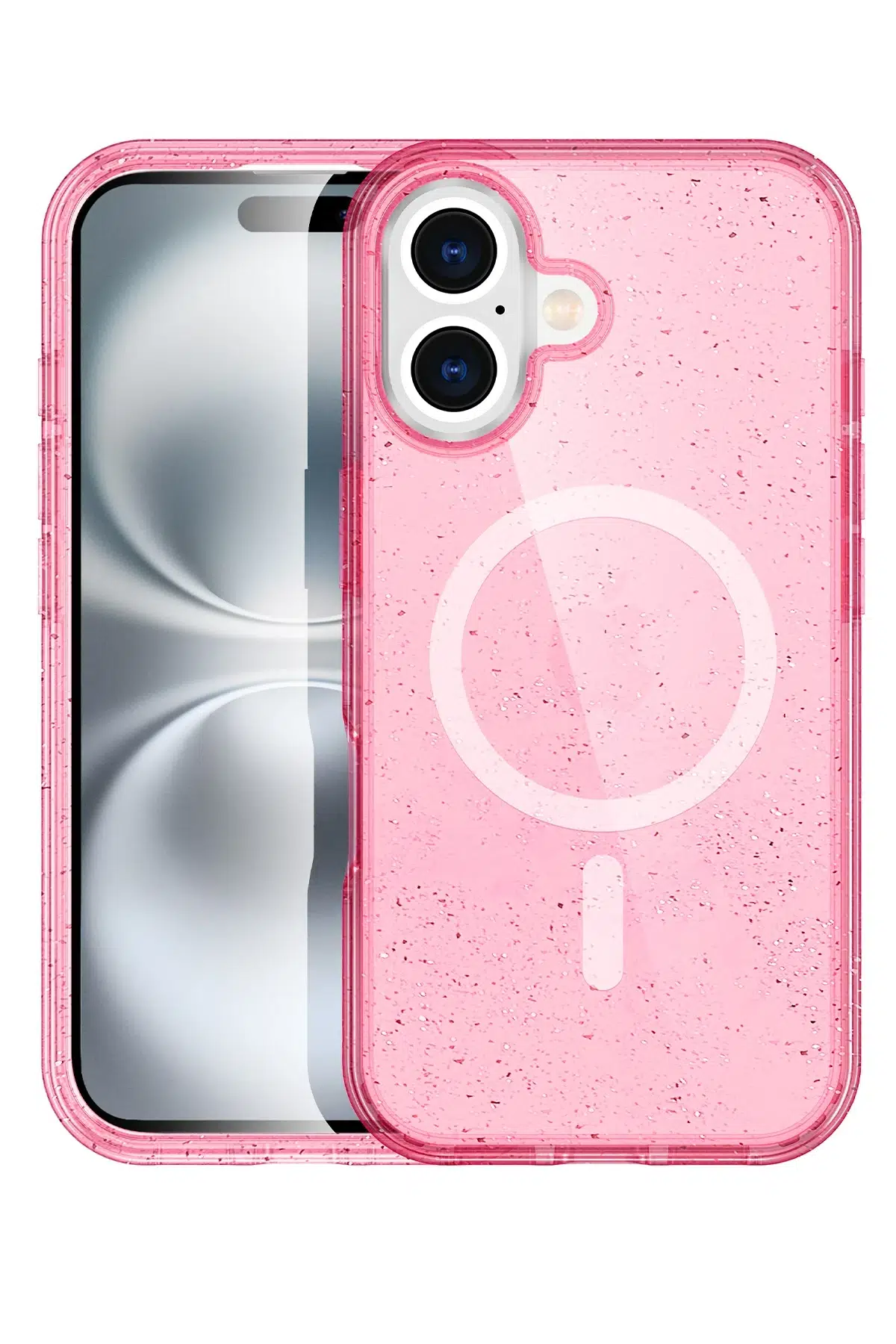 Glow Kablosuz Şarj Özellikli Kapak, telefonunuzu her açıdan öne çıkaran parlak ve şık bir tasarıma sahiptir. Simli arka planı, ışık altında parlayarak cihazınıza göz alıcı bir görünüm kazandırır.