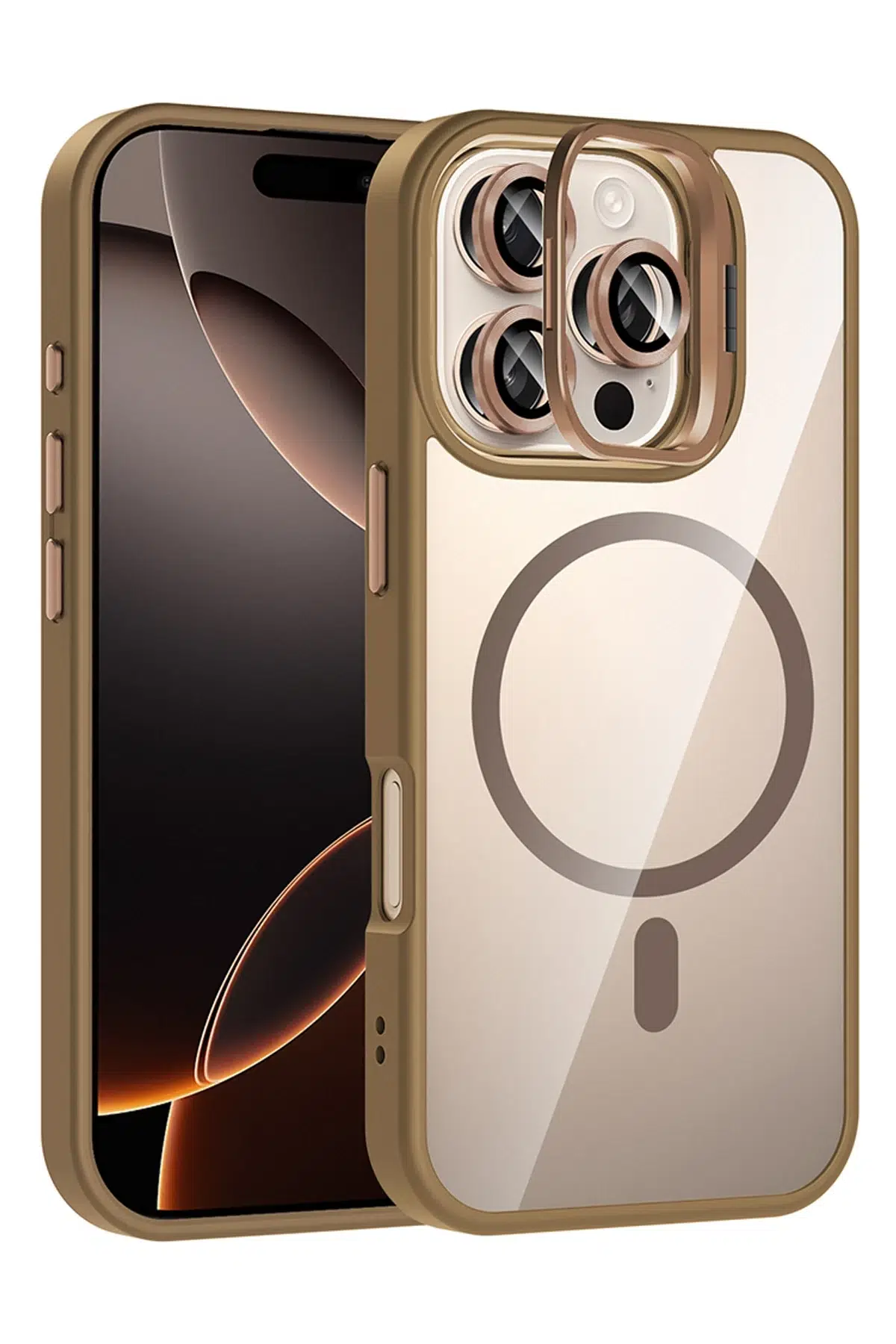 | Etiketler | Fuchsia iPhone 16 Pro Max ile Uyumlu Remim Lensli Kablosuz Şarj Özellikli Standlı Kapak - Kahverengi |