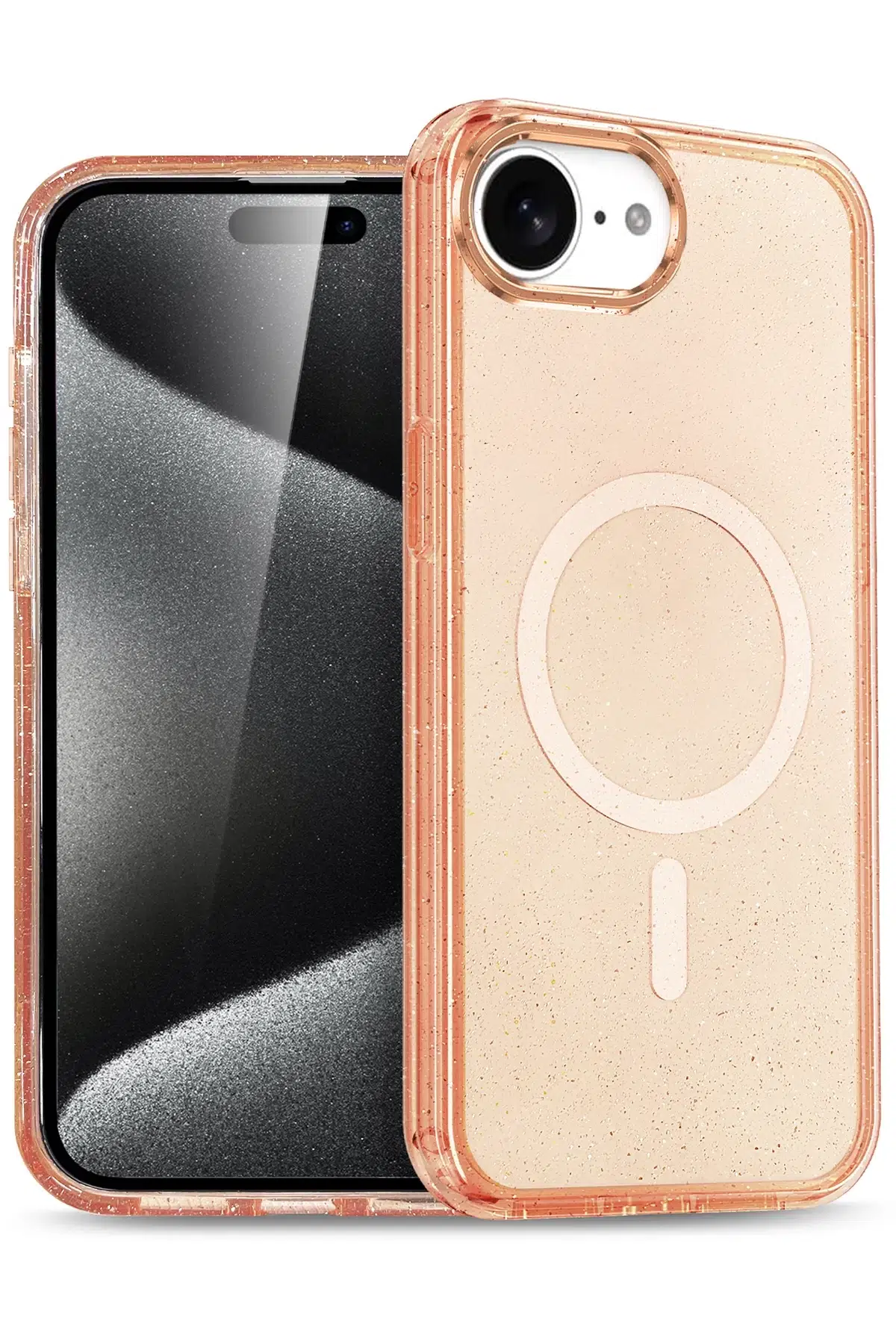 Glow Kablosuz Şarj Özellikli Kapak, telefonunuzu her açıdan öne çıkaran parlak ve şık bir tasarıma sahiptir. Simli arka planı, ışık altında parlayarak cihazınıza göz alıcı bir görünüm kazandırır.
