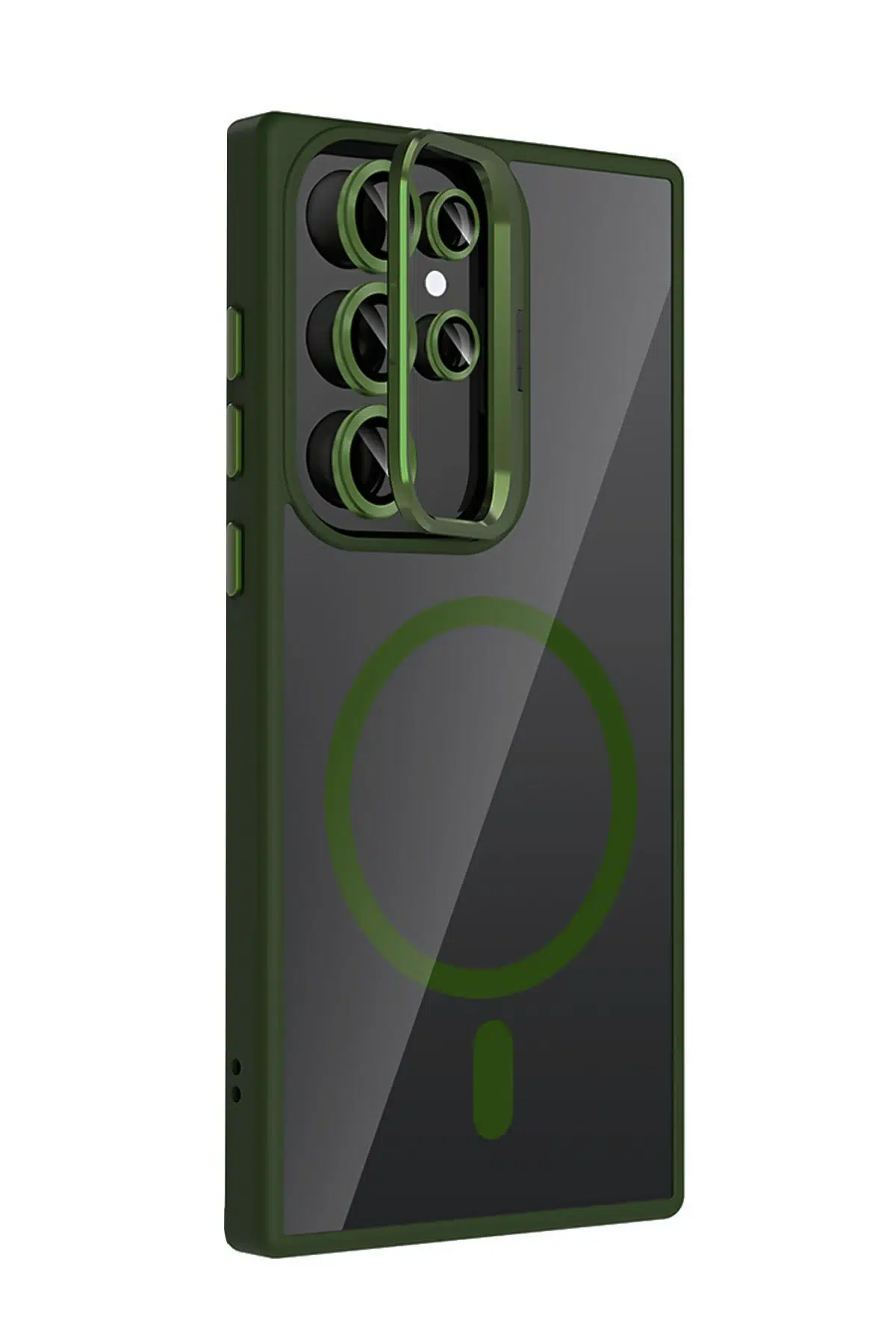 Kılıfın detaylarında yer alan metal düğmeler ve şık kamera çerçevesi, cihazınıza sofistike ve lüks bir dokunuş katar.