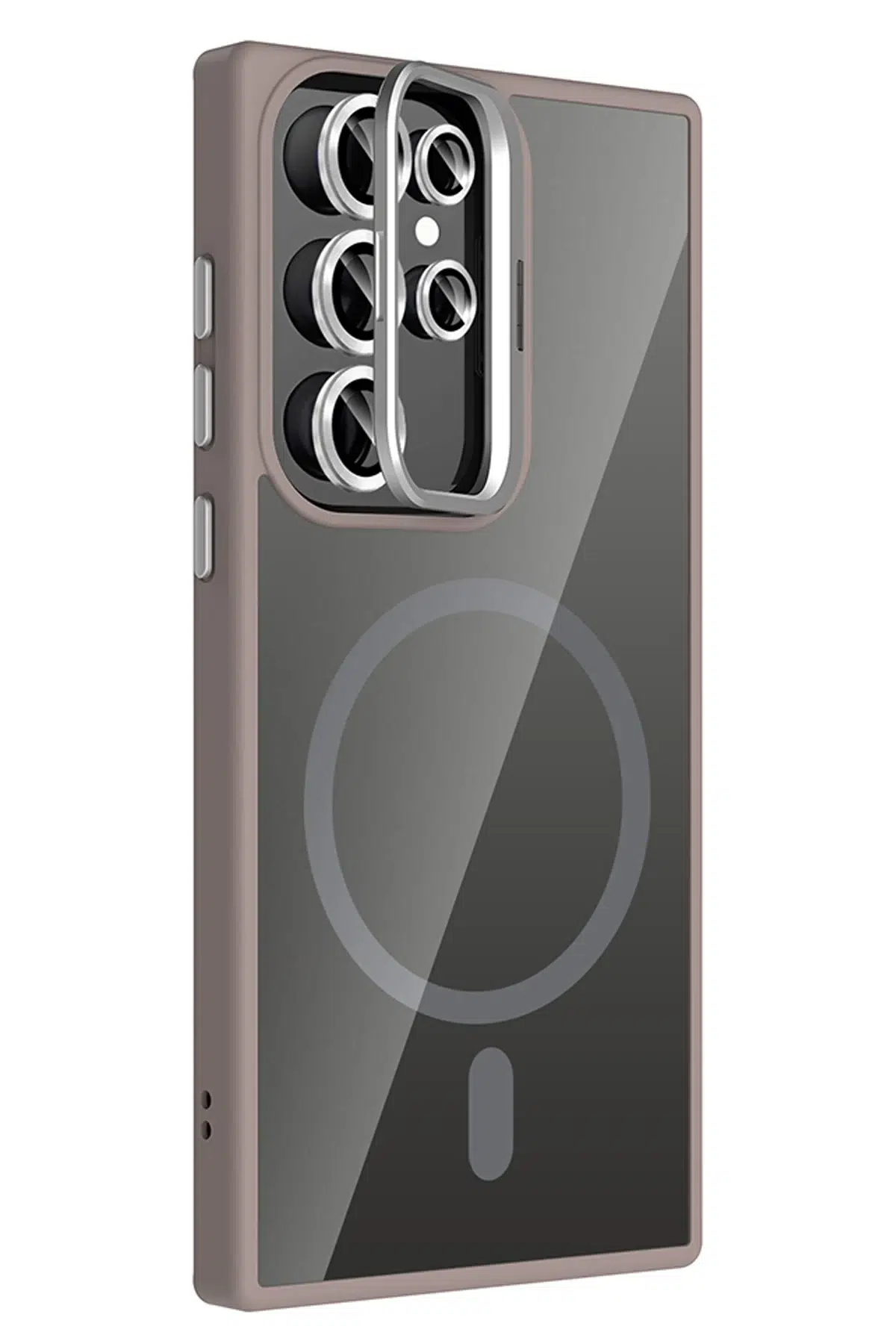 Kılıfın detaylarında yer alan metal düğmeler ve şık kamera çerçevesi, cihazınıza sofistike ve lüks bir dokunuş katar.