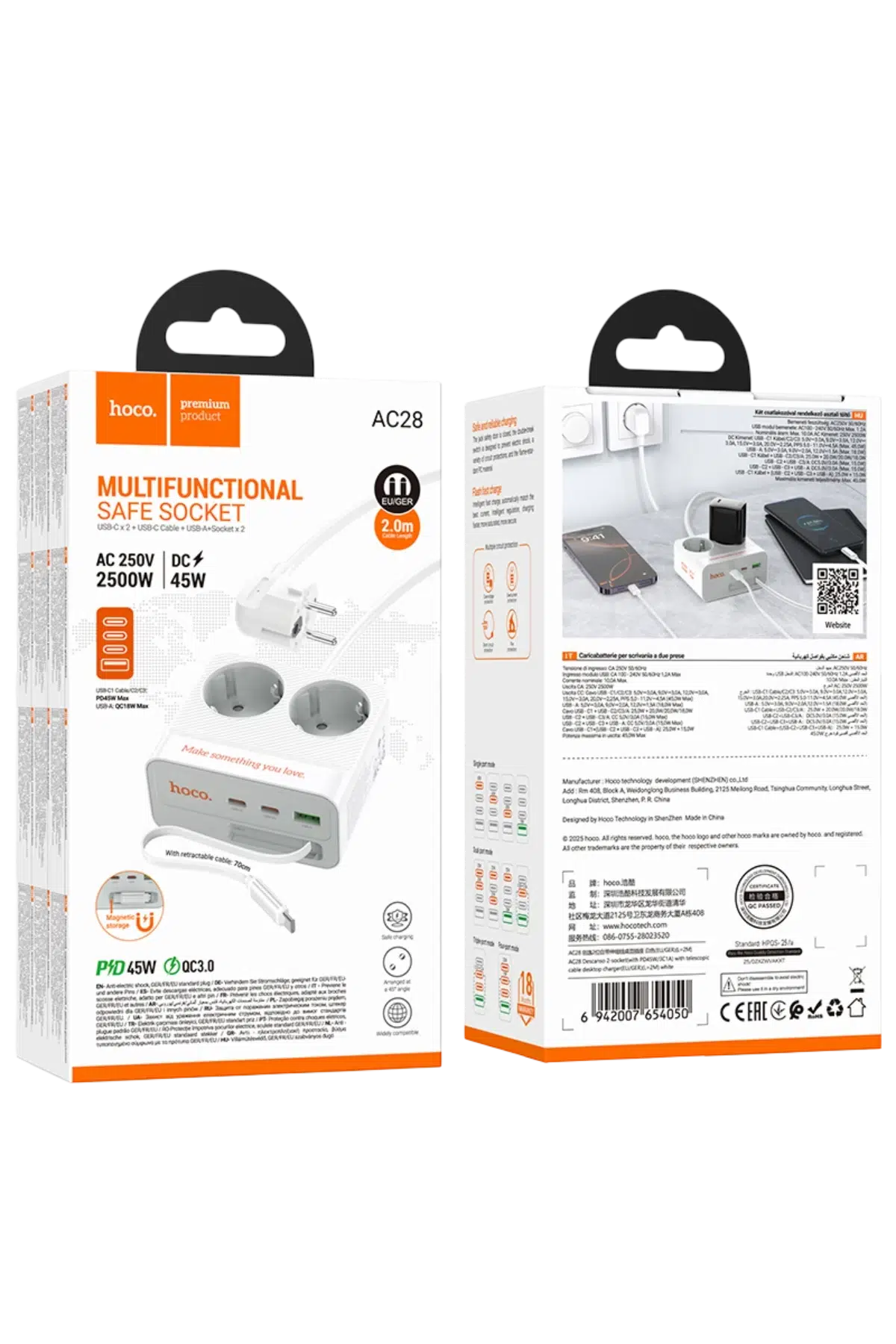 Hoco. AC28 Descanso 6in1 2M 2500W Priz Dönüştürücü
