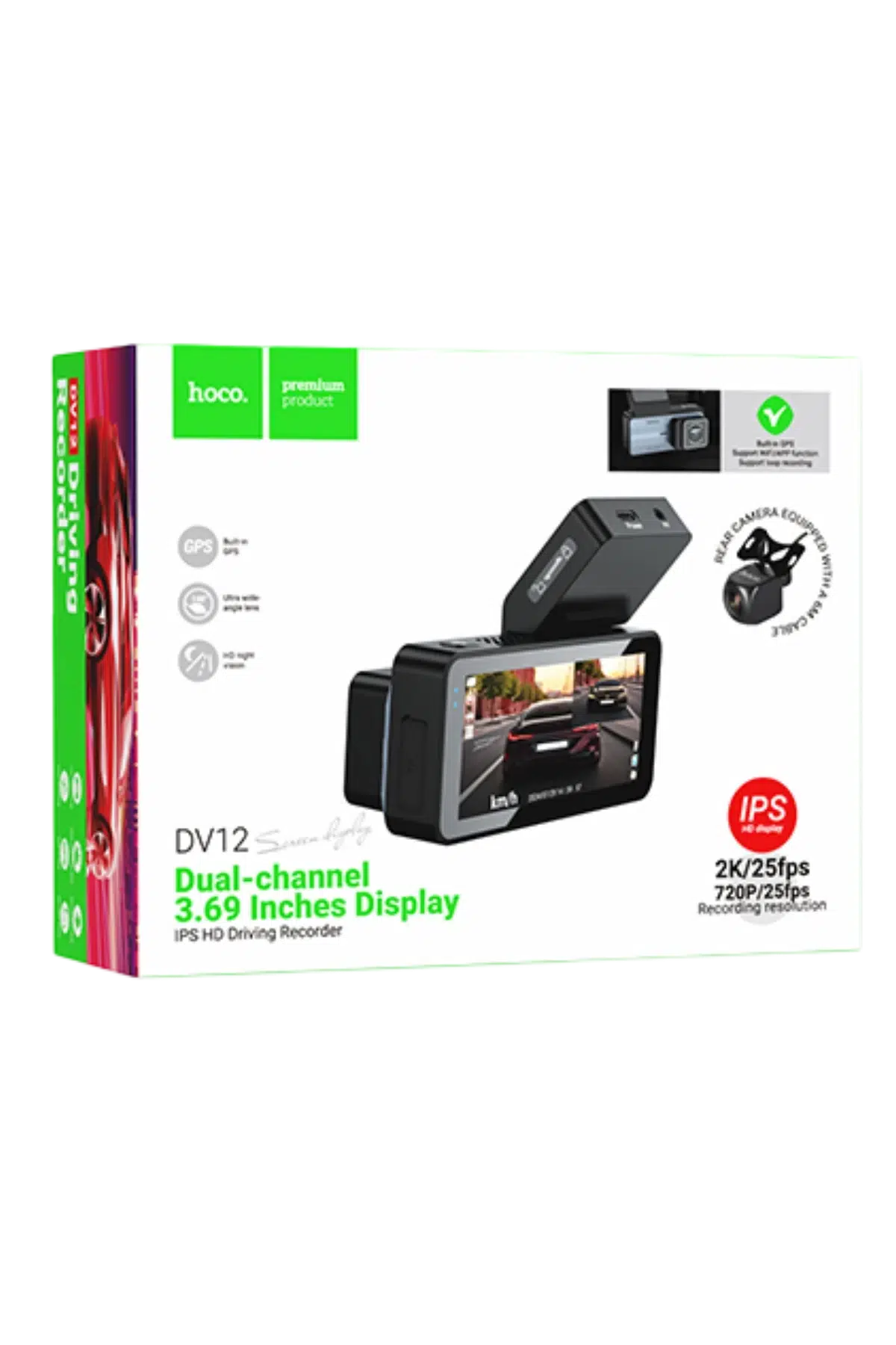 Hoco. DV12 2K GPS Destekli Ön ve Arka Kameralı Araç Kamerası