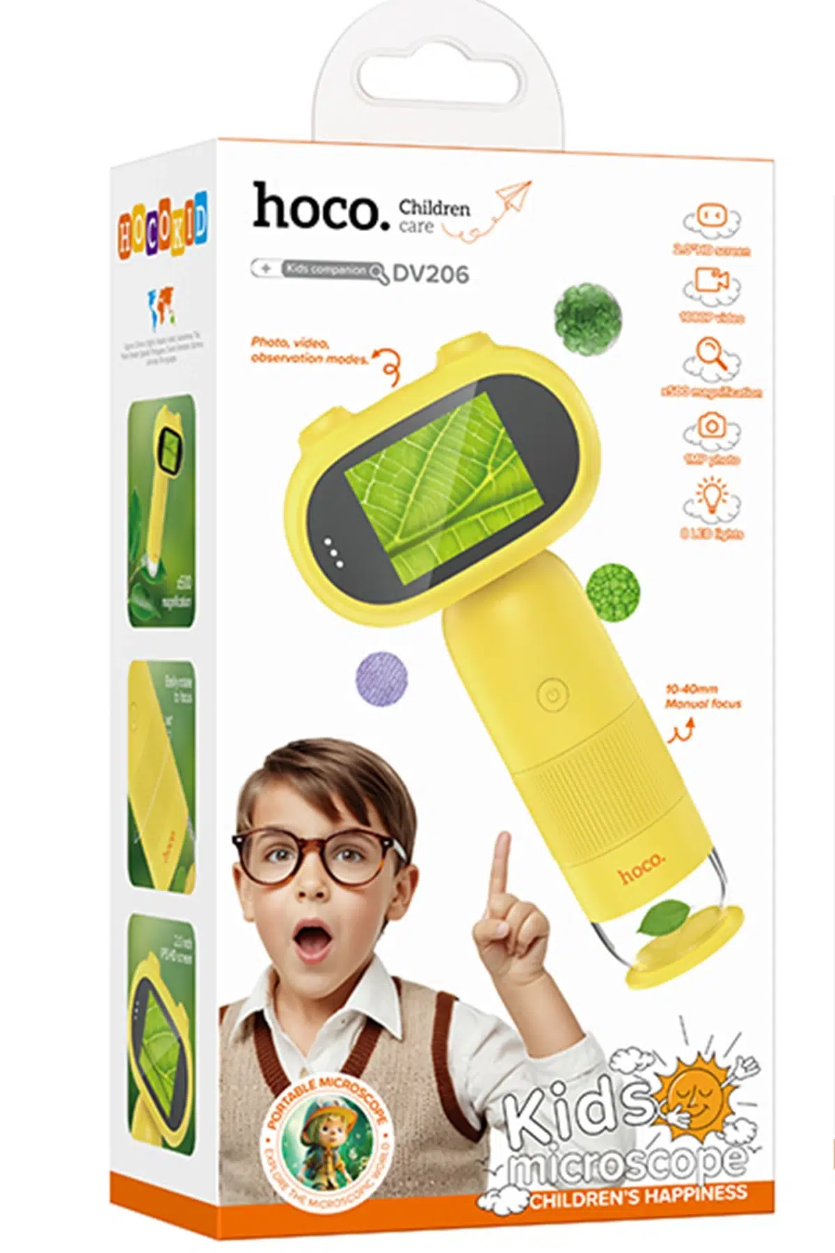 Hoco. DV206 Çocuk Mikroskobu: Çocukların keşfetme yoluyla eğitici ve eğlenceli vakit geçirmesi için tasarlanmış bir mikroskoptur. Ana işlemcisi Today’s 3295B ve 1MP çözünürlüklü SP1618 sensörüne sahiptir.