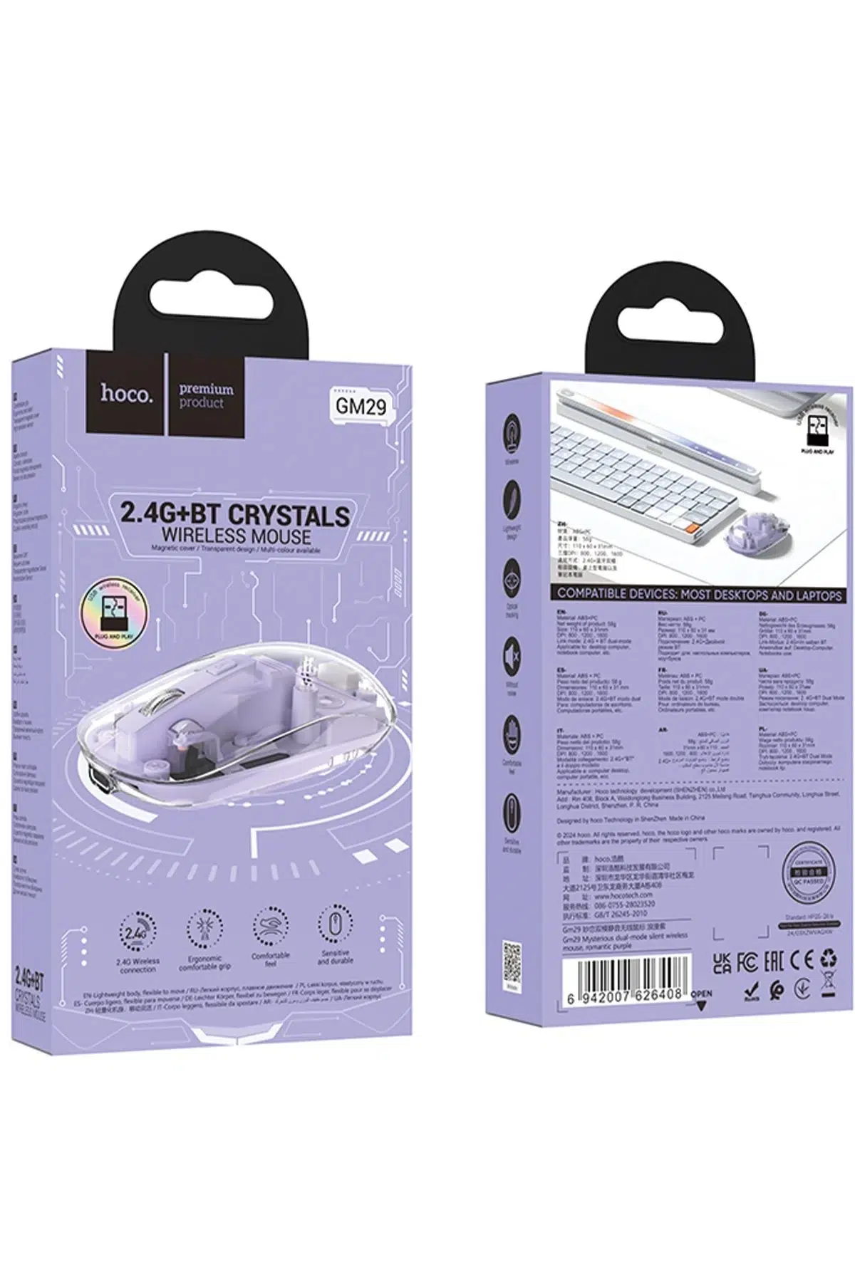 Hoco. GM29, 2.4G ve Bluetooth çift modlu bağlantı seçeneği ile çeşitli cihazlarla uyumlu çalışır. Bu esneklik, kullanıcıların farklı cihazlarda rahatlıkla kullanımını mümkün kılar. Hızlı ve kolay bağlantı seçenekleri sayesinde, iş akışınızda kesintiye neden olmaz.