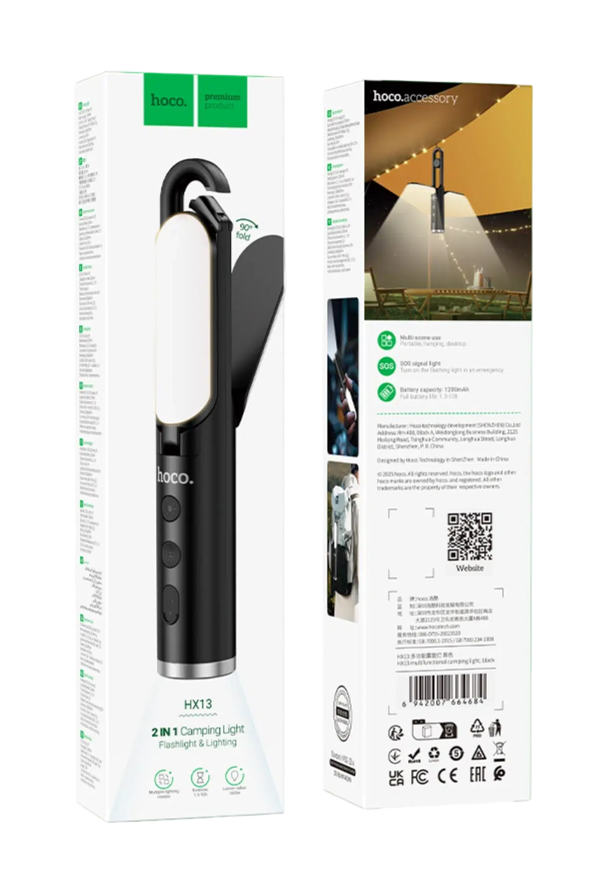 Hoco. HX13 2in1 Çok Fonksiyonlu Kamp Işığı