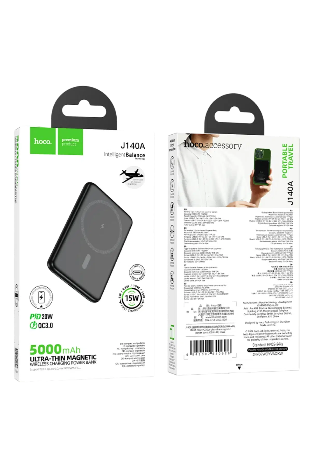✅ 5000 mAh Yüksek Kapasite: HOCO J140A powerbank, 5000 mAh kapasitesi ile telefonunuzu hızlı ve uzun süre şarj eder.