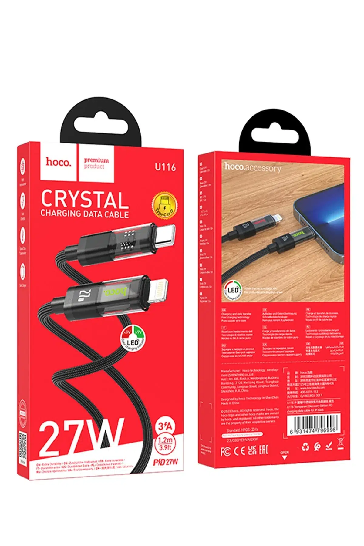 Hoco. U116, PD destekli adaptörlerle kullanıcıiPhone 8 ve üzeri cihazları 30 dakikada %50'ye kadar şarj edebilir. USB 2.0 standardı ile 480 Mbps veri hızı sunar, Örgülü dış naylon kaplama , kırılmalara