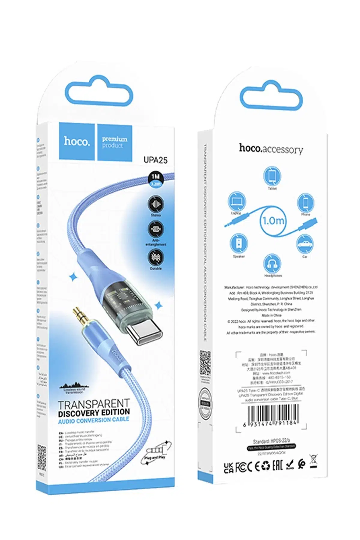 | Etiketler | Hoco. UPA25 1M Tak Çalıştır Type-C to Aux Kablo - Mavi |