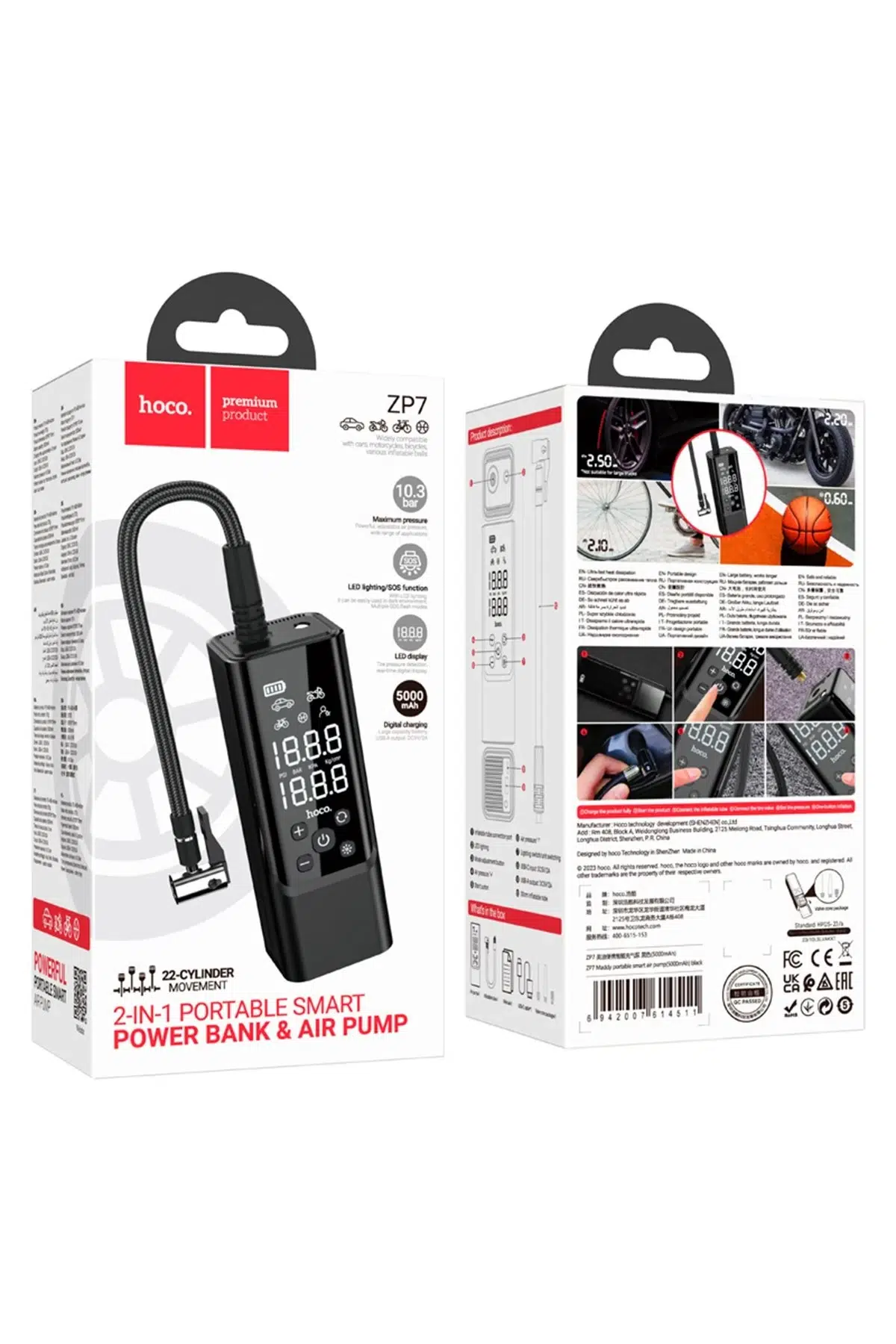 Hoco. ZP7 Çok Fonksiyonlu Dijital Göstergeli 5000 mAh Bataryalı Akıllı Kablosuz Hava Kompresörü