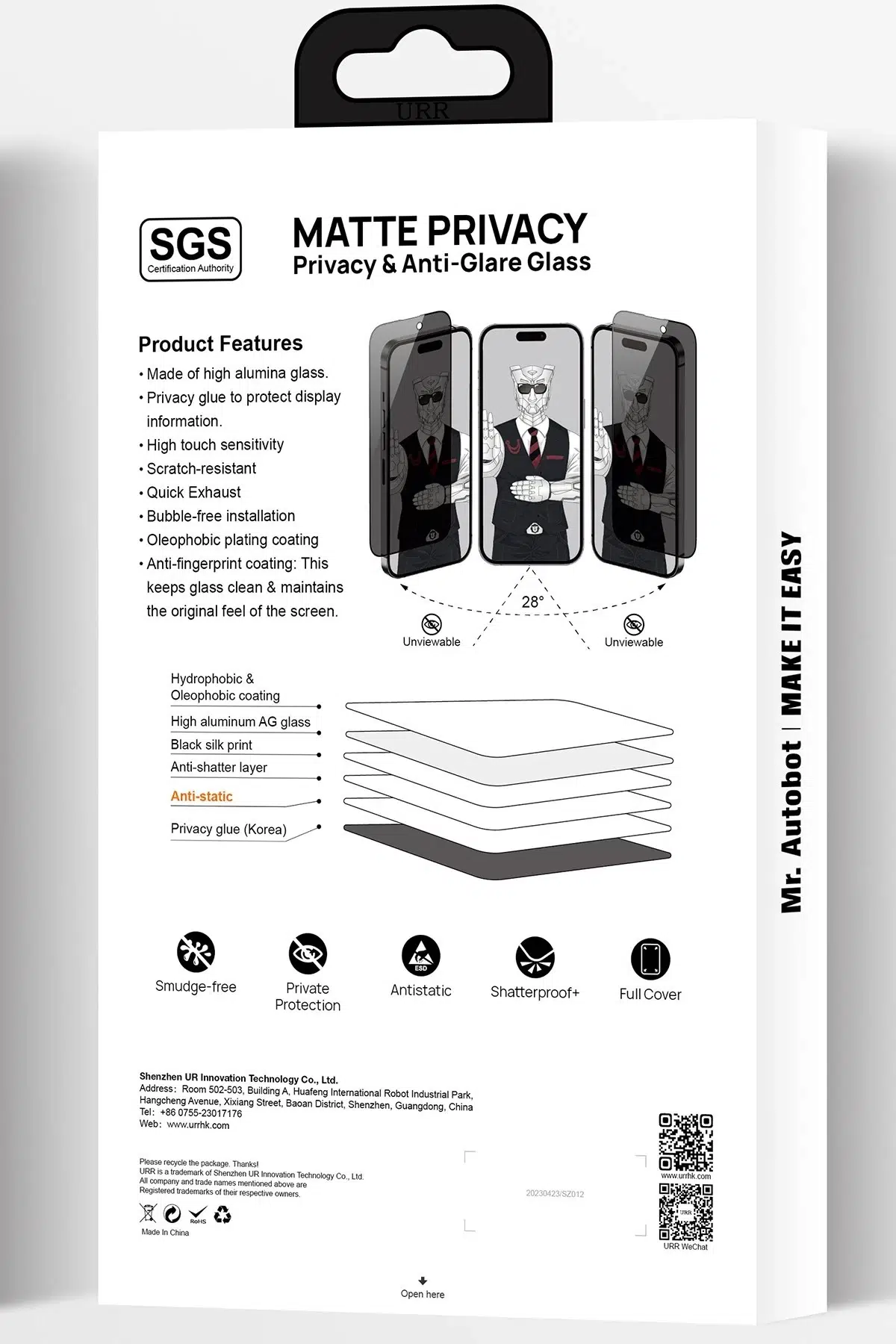 Özel olarak tasarlanmış gizlilik filtresi, ekranın sadece karşıdan bakan kişiler tarafından görülmesini sağlar. Yan açılardan bakıldığında ekran karanlık görünür, böylece özel bilgilerinizin güvenliğini artırır.