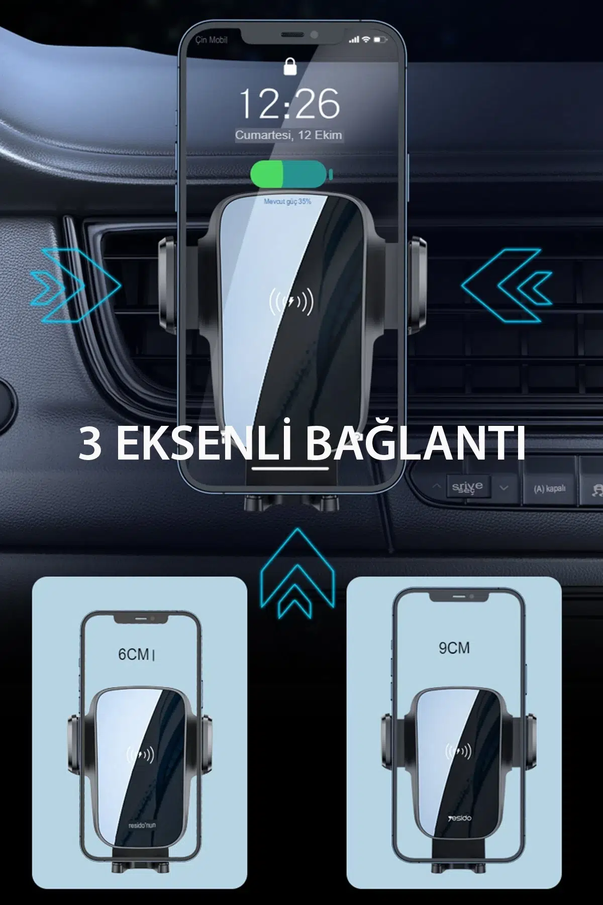 Siyah renkli ve kompakt tasarımı, aracınızın iç mekanına modern ve zarif bir dokunuş katar. İnce yapısı, araç içindeki diğer aksesuarlarla uyum sağlar ve telefonunuzu düzenli bir şekilde tutar.