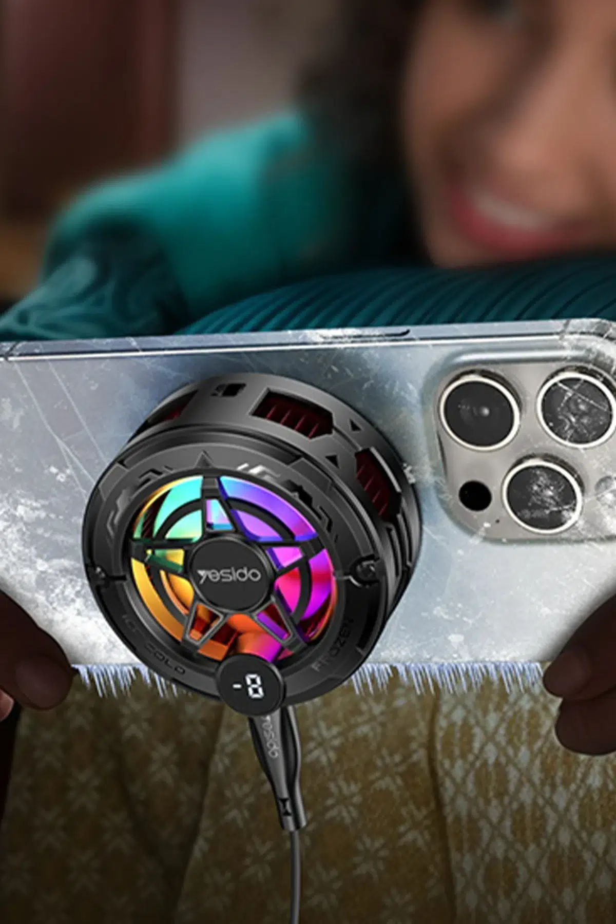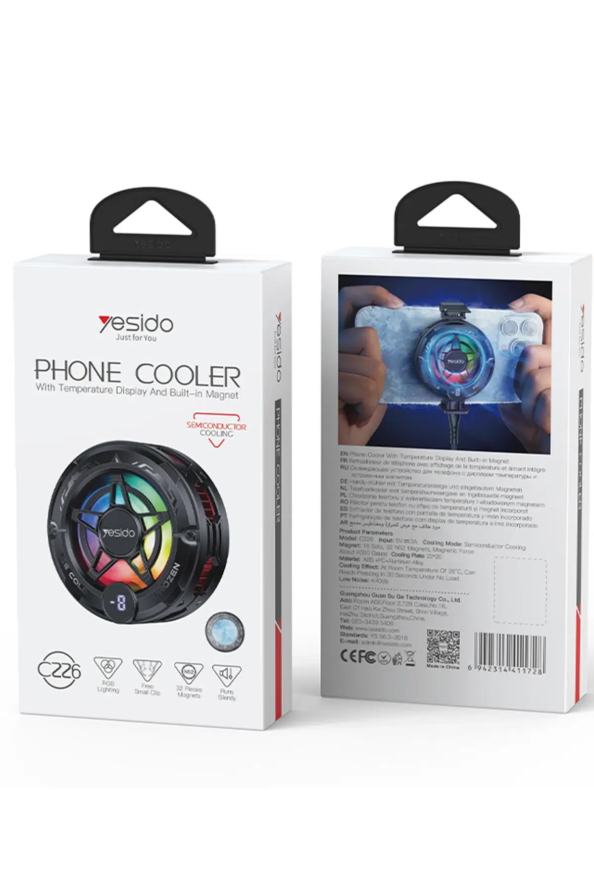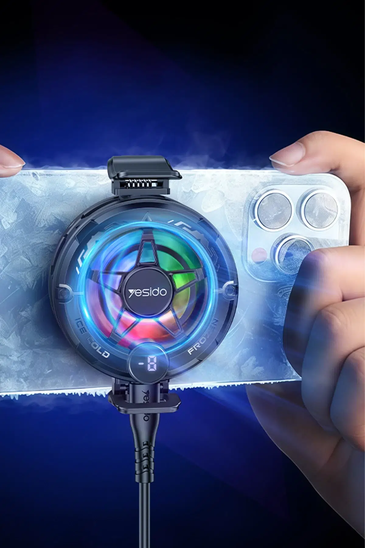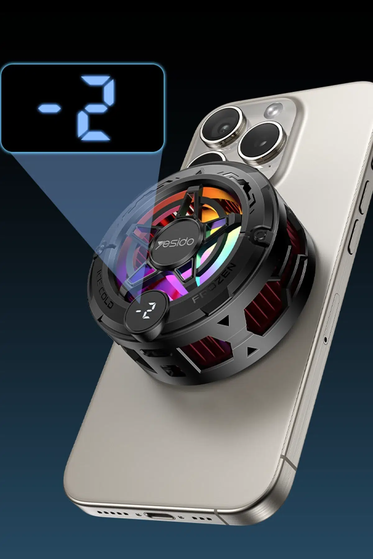 Yesido C226 Dijital Sıcaklık Göstergeli RGB Işıklı Radyatör Telefon Soğutucu Fan