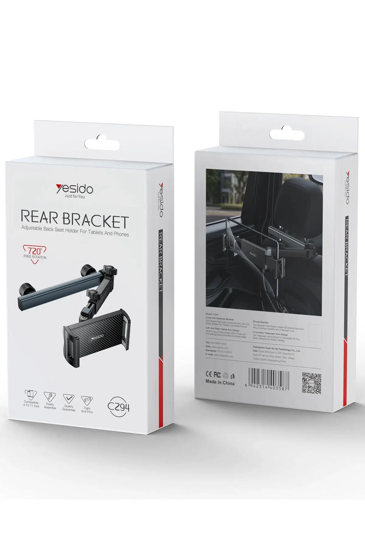 Yesido C294 360 Derece Ayarlanabilir Klipsli Koltuk Arkası Telefon Tablet Tutucu