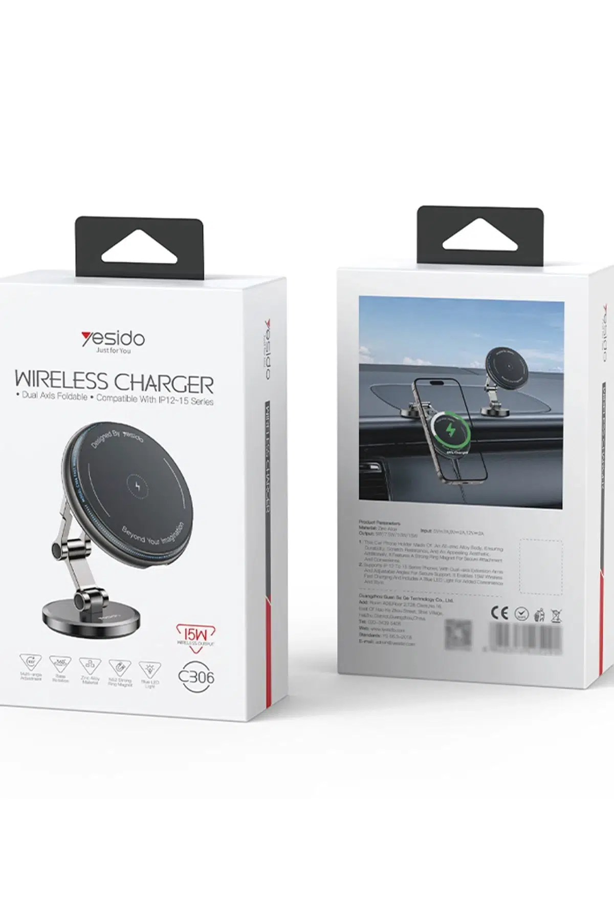 Yesido C306 Yapışkanlı 360 Derece Ayarlanabilir 15W Kablosuz Şarjlı Magsafe Araç Tutucu