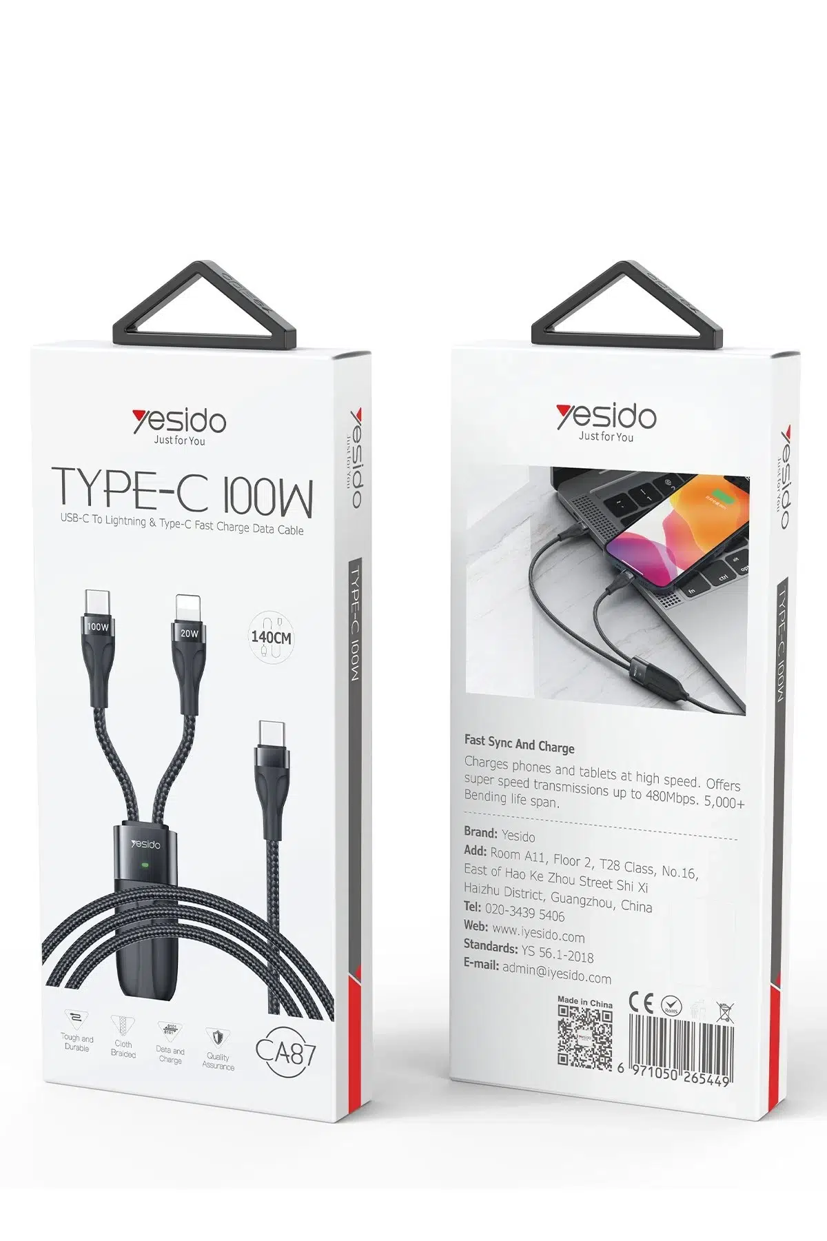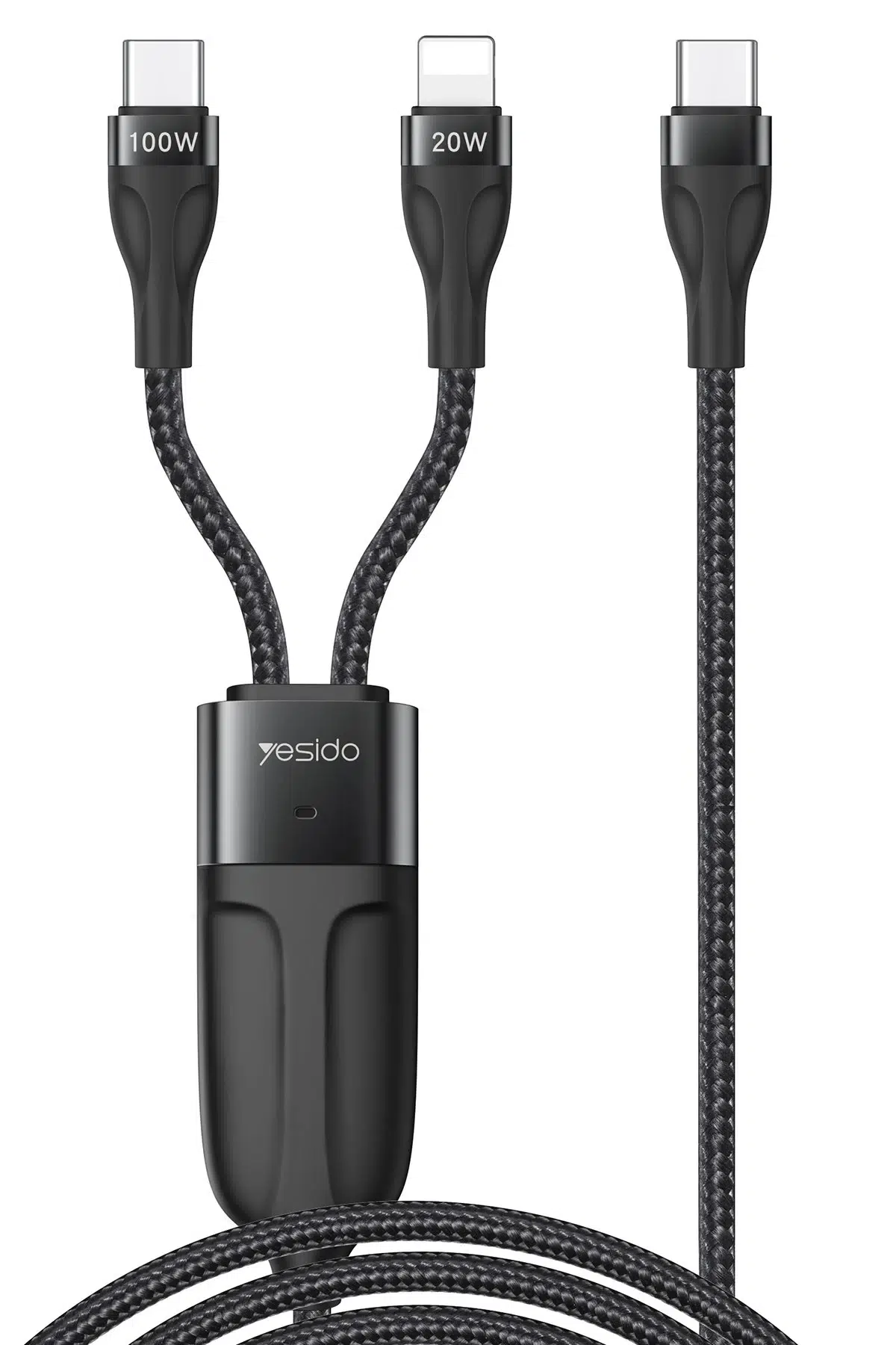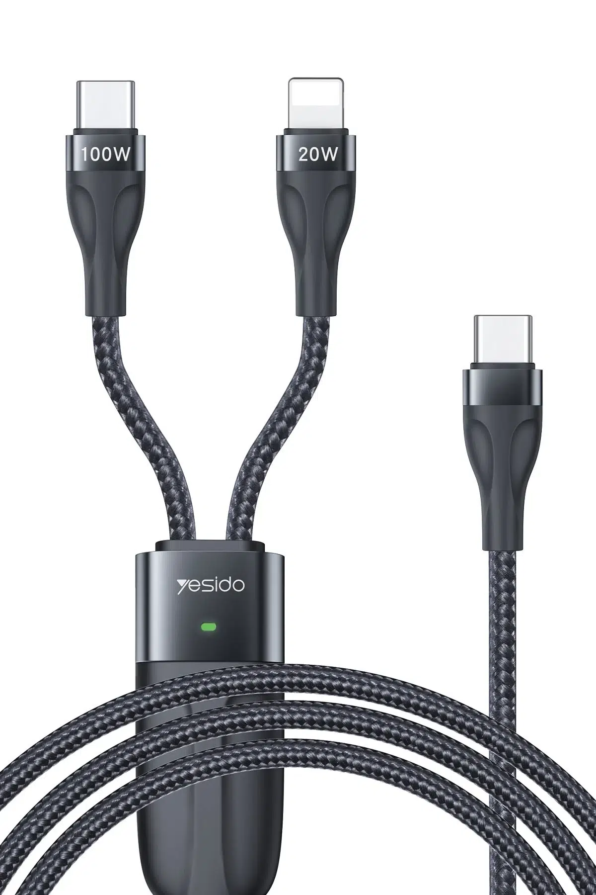 Yesido CA87 1.4M Type-C to 100W Type-C ve 20W Lightning Çift Çıkışlı 2in1 PD Hızlı Şarj Kablosu