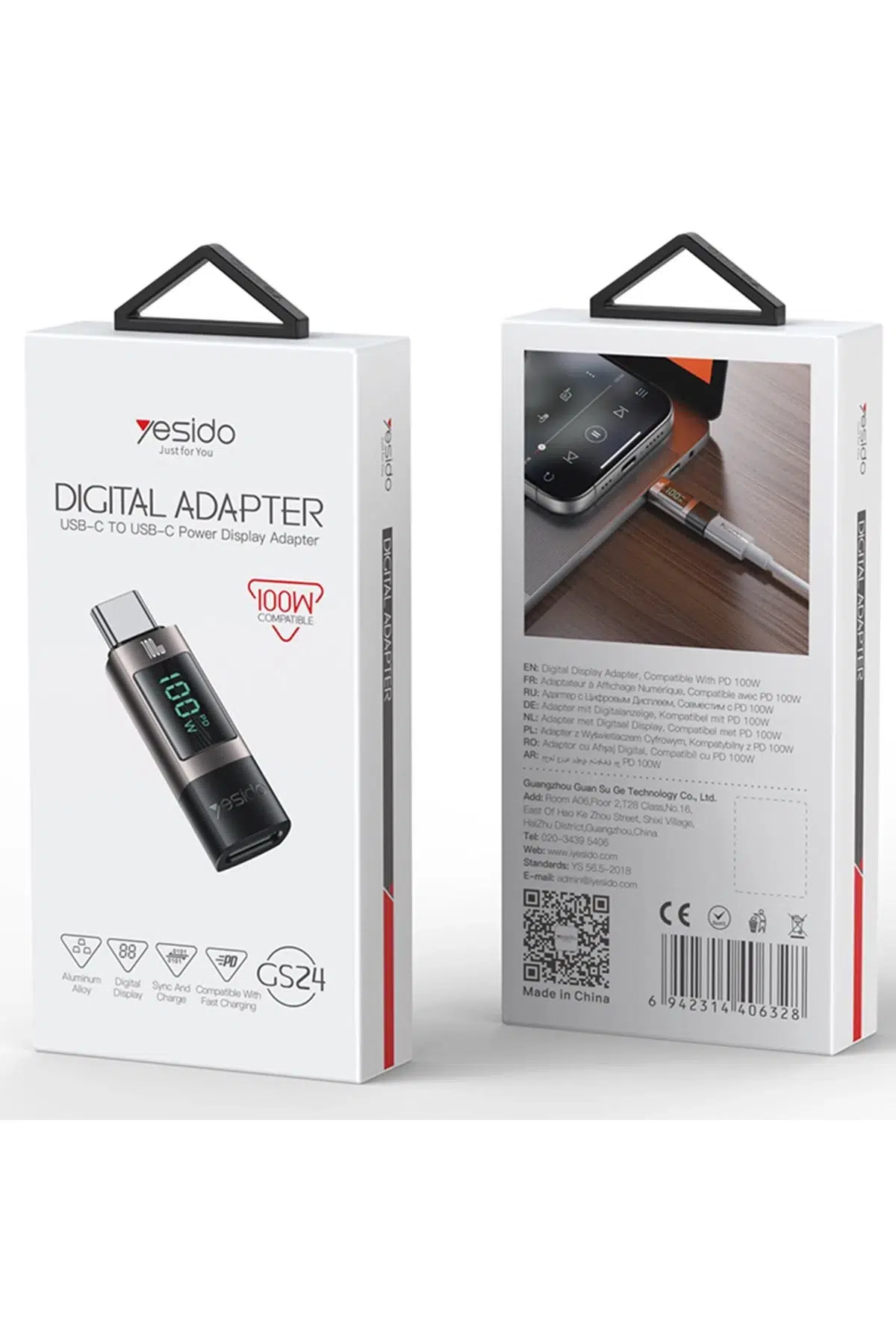Yesido GS24 Type-C to Type-C 100W Dijital Ekranlı Dönüştürücü