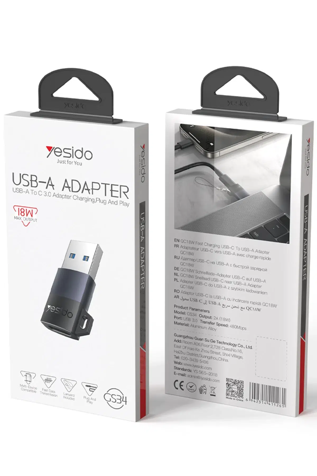 Yesido GS34 USB to Type-C 480 Mbps Data ve 18W Hızlı Şarj Destekli OTG Dönüştürücü